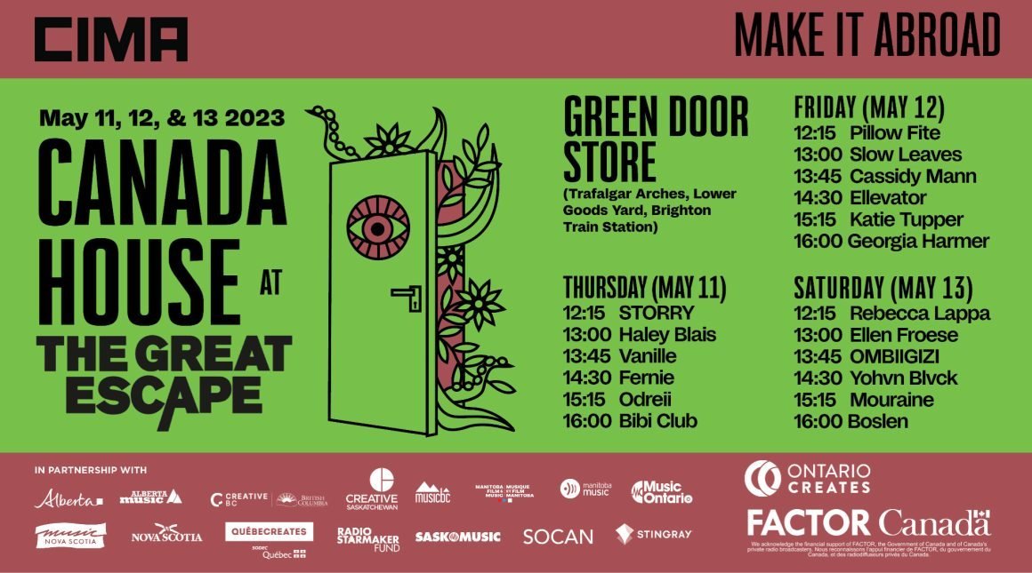 Canada House takes place at Brighton's Green Door Store between 11th and 13th May. You can check out the full timings in the image below.