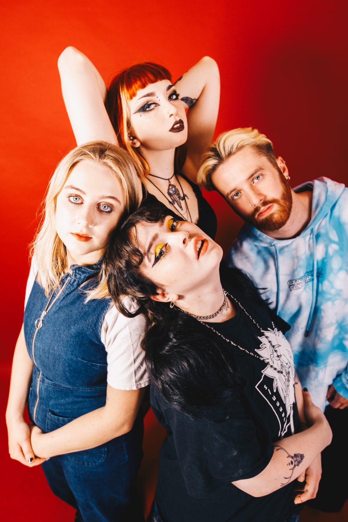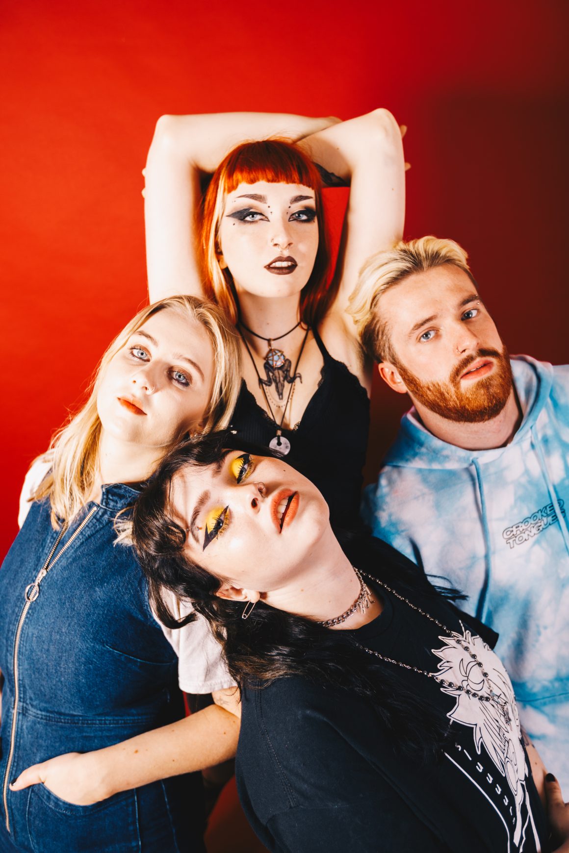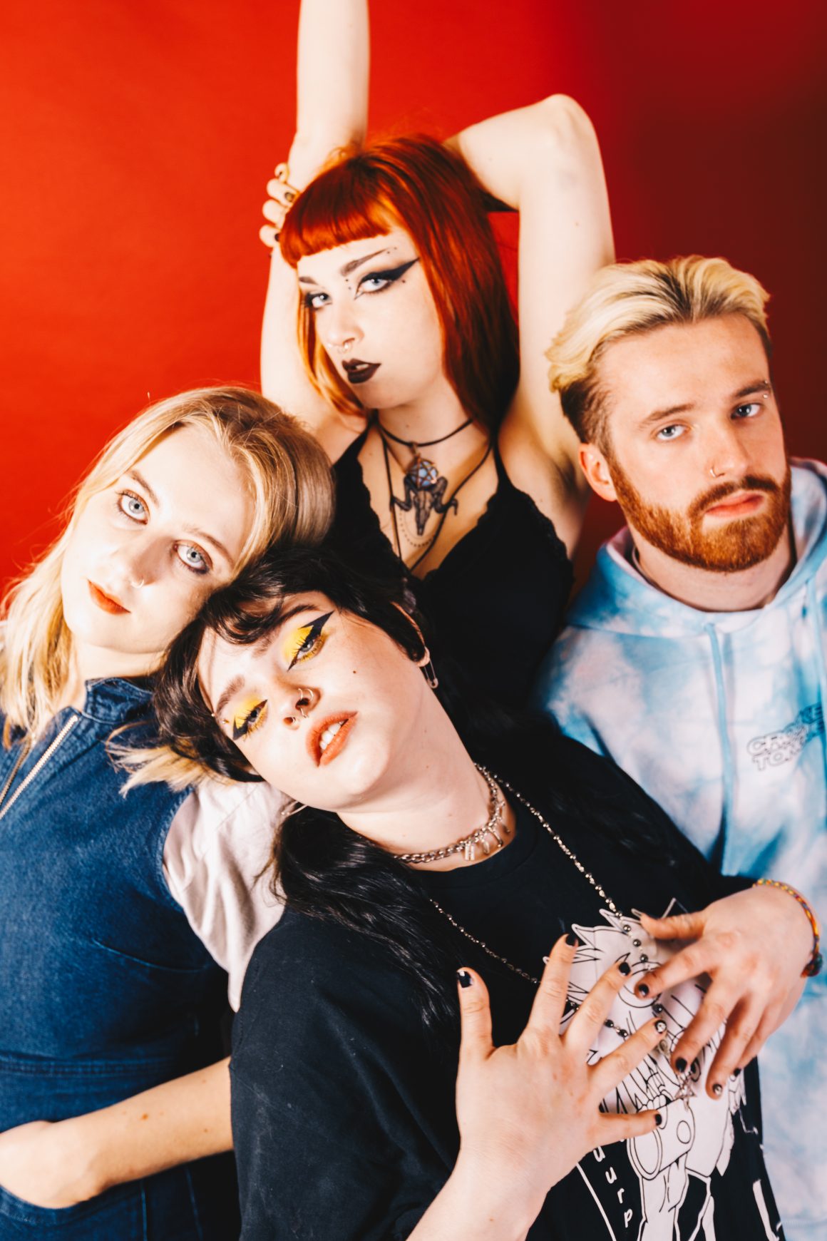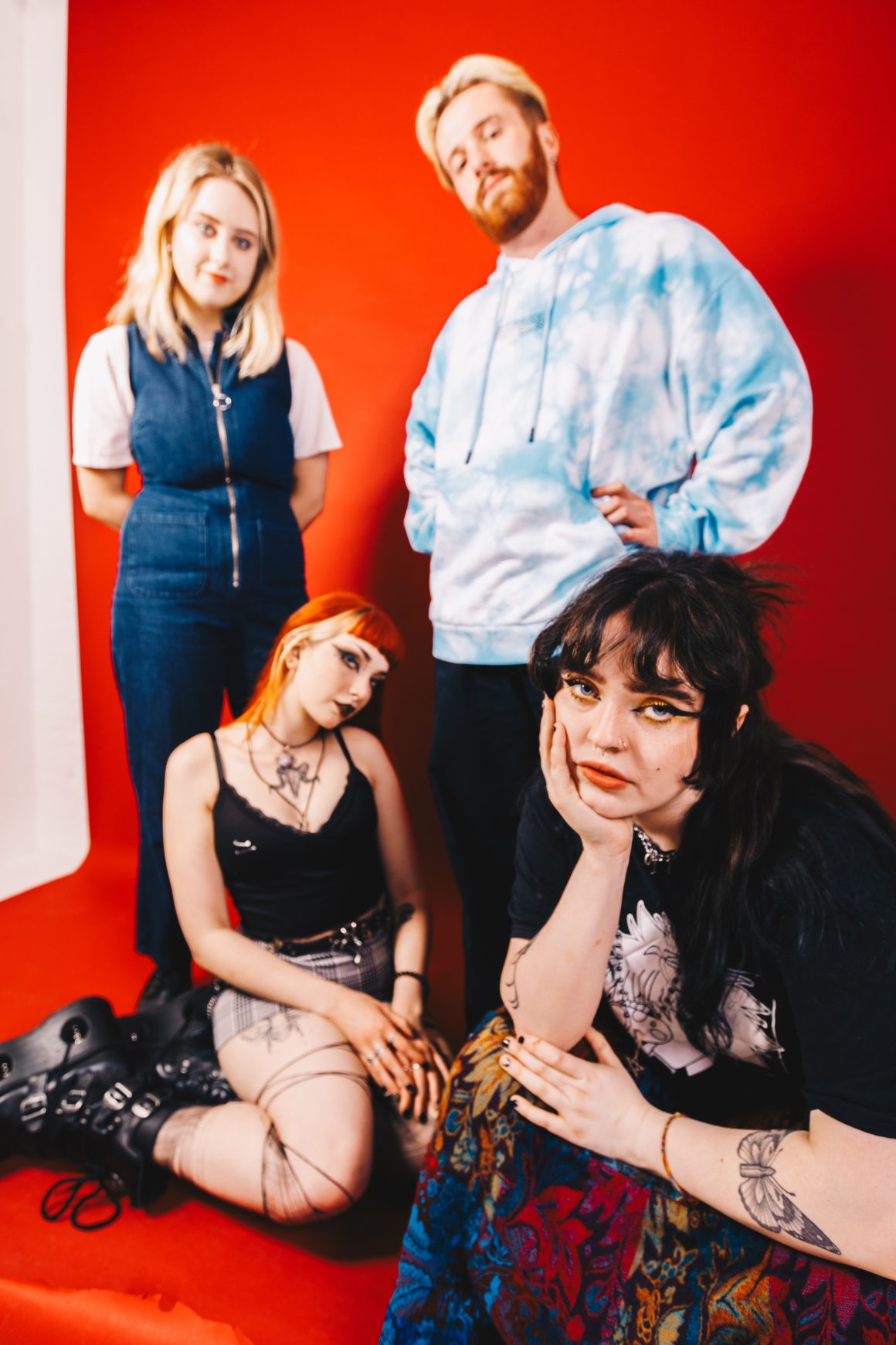 A look through their journey so far can best explain the Crawlers we see before us today - a band thriving with the here and now while also fully aware of the importance of the stories they're telling in their music. When Holly joined Amy and bassist Liv Kettle to form a new band, they bonded over the sounds of Queens Of The Stone Age and Nirvana before more influences and tastes poured into what they were doing. "Liv went even more metal-y, Amy went really pop-y with like Charli XCX and ABBA, and I got really into songwriters and songwriting as a whole," explains Holly. When drummer Harry Breen joined, those punk influences made their way into the Crawlers' sound, and before they knew it, they were asking: "How are we going to satisfy ourselves? It's just writing good songs to the vibe we think goes best with them. We definitely started saying we're a rock band, and then we've ended up going - we don't really know, we're Crawlers, I guess?'