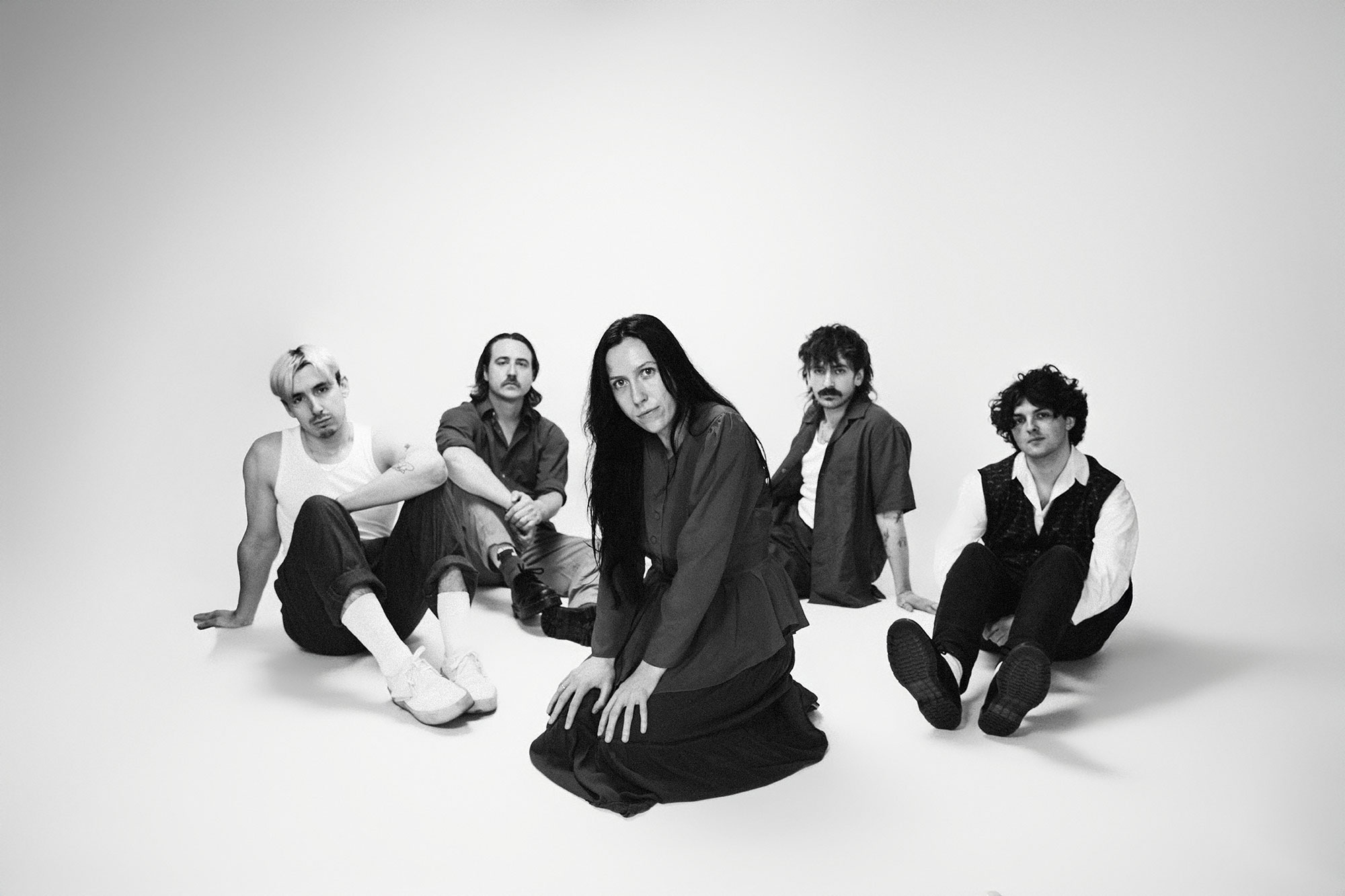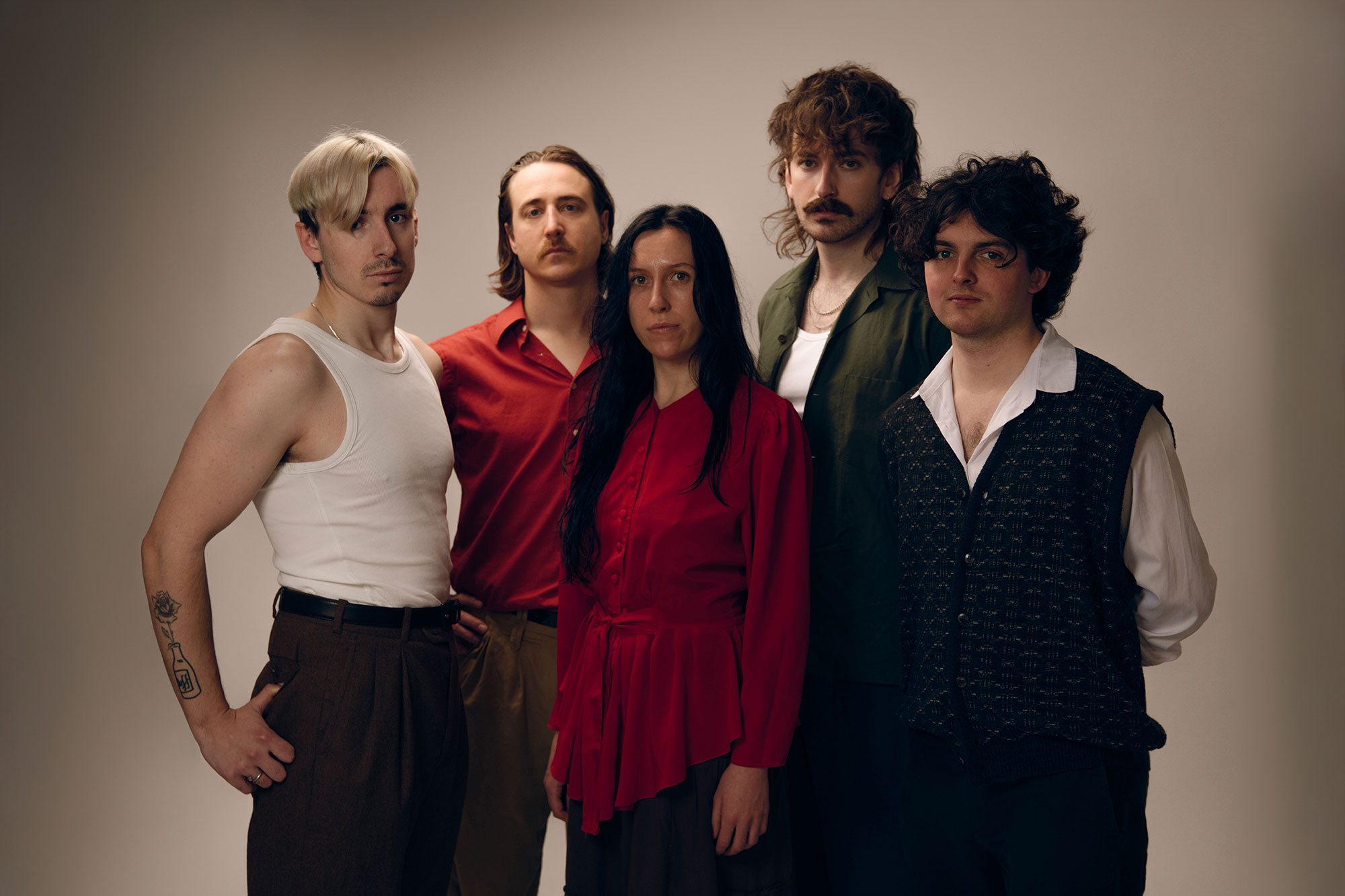 The five-piece band, now fully settled in London after years of exhausting commutes from Bedford, have been crafting their distinctively dark sound for the better part of a decade. "First song we wrote together was seven years ago in Jed's living room, and oh god, I can't even bring myself to think about it; it was awful," vocalist Katie Healy recalls with a laugh, describing how they used that early attempt to "lure" their current guitarist Jimbo into the fold.