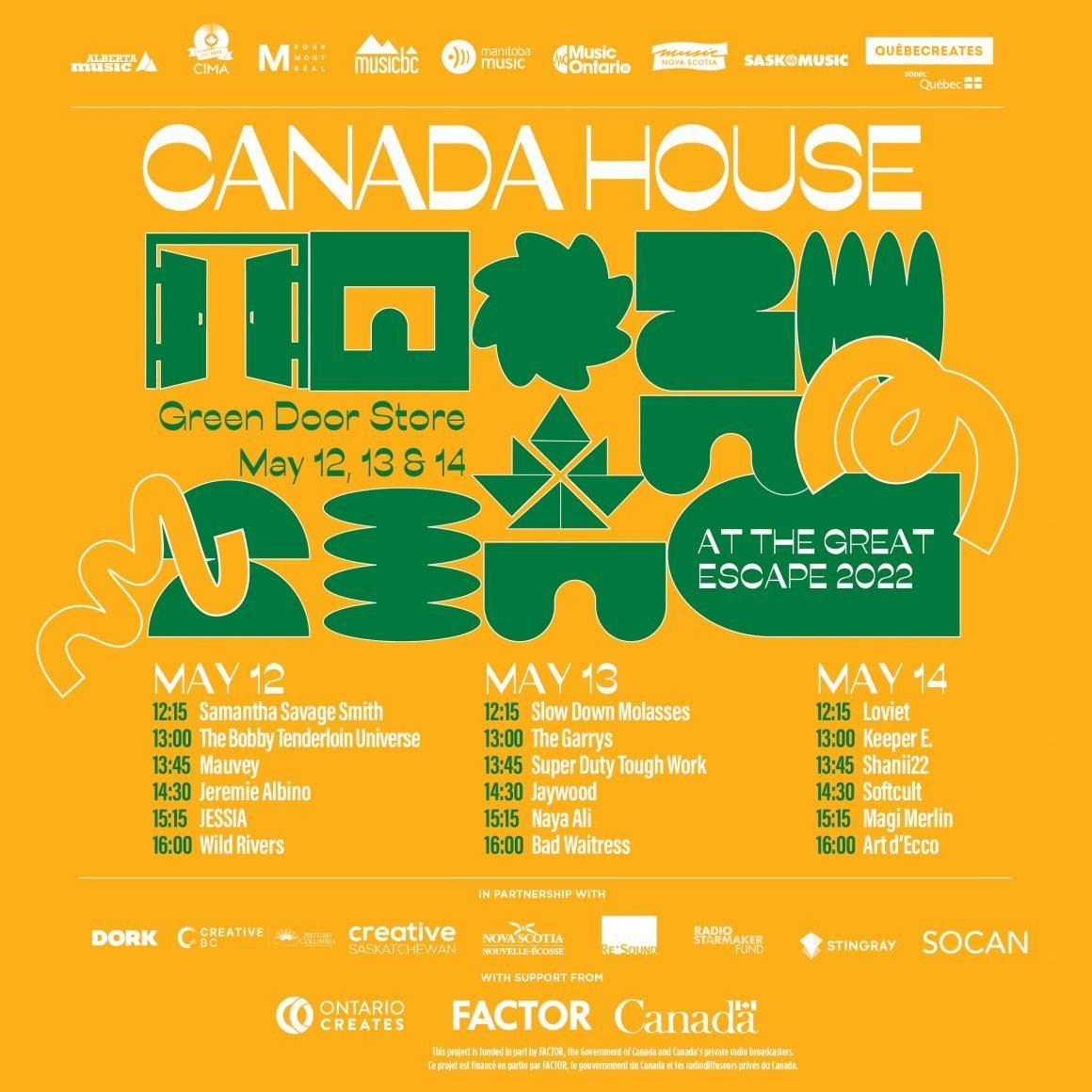 The full schedule for this year's Canada House at The Great Escape reads: