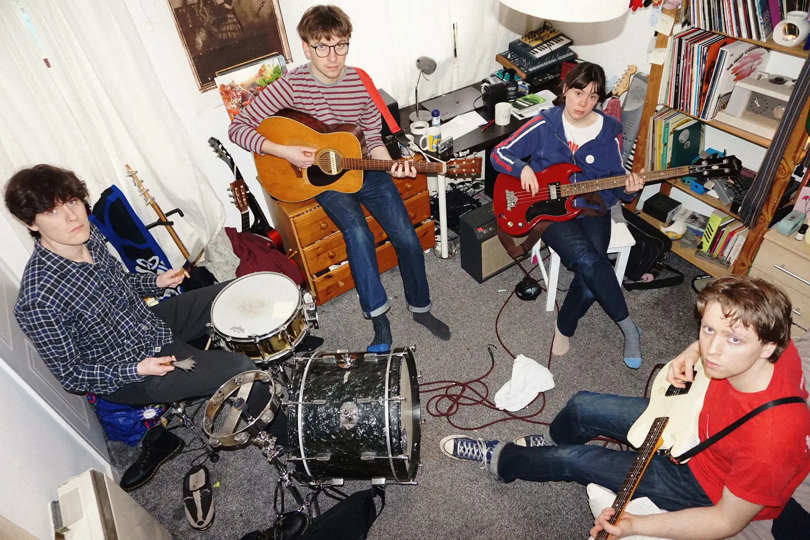 Four university students gathered around a drum kit in a dimly lit Manchester bedroom, playing covers to escape their "pretty floppy lives." It wasn't meant to be anything more than that - a refuge from burnout, a chance to make noise with friends, maybe order some Chinese food later. But sometimes the best art emerges from the spaces between intention and accident, from moments when no one's trying to make history.