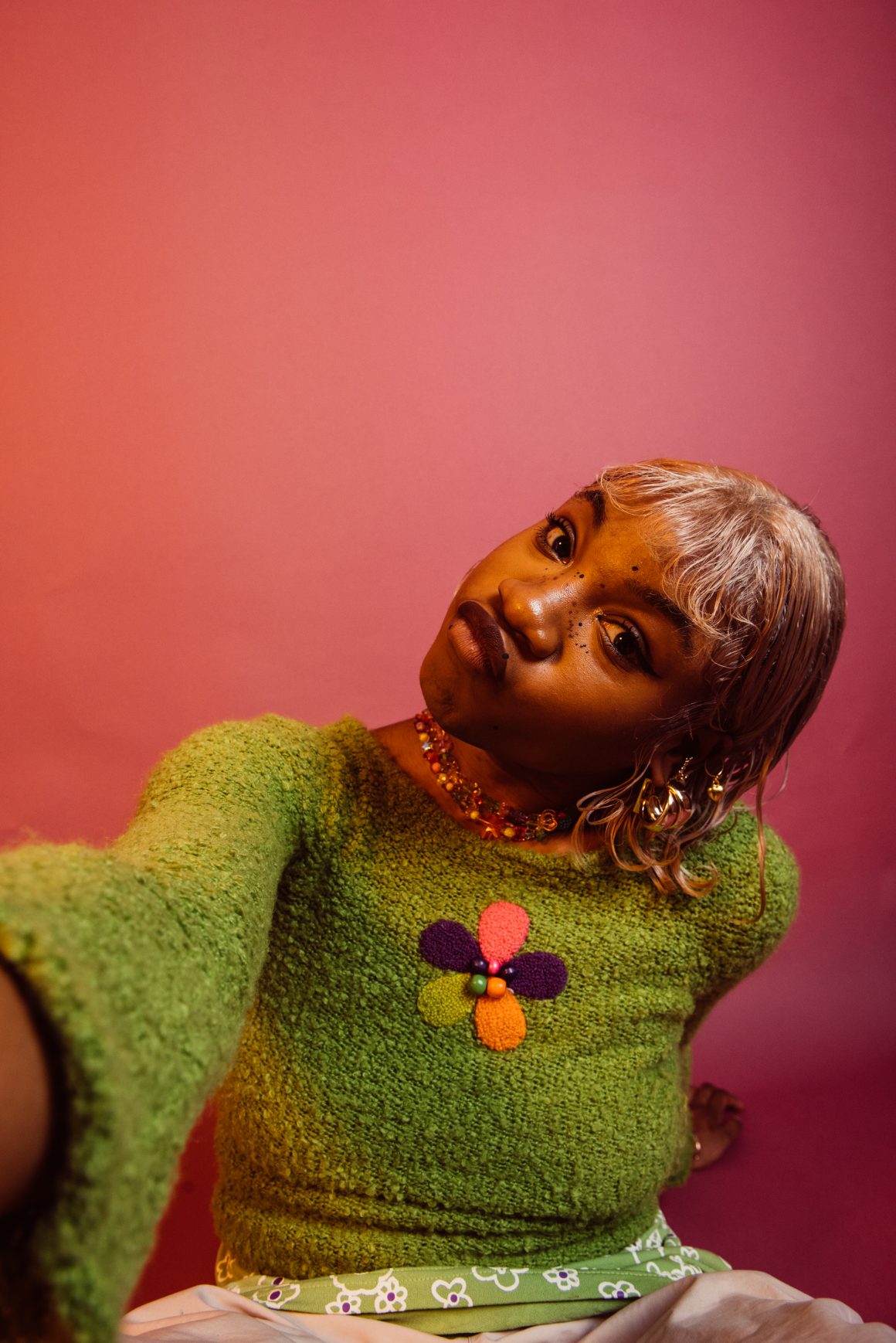 One of her biggest influences is an artist who perhaps best represents blasting out of your own supposed lane and realising your own vision. In typically off-beat EFÉ style, though, it came with a twist. “I feel like my biggest influence was Beyoncé,” she begins before laughing. “I remember there was a time when I was like, Oh my gosh, the Illuminati is real, so I’m not going to listen to Beyoncé. I stopped listening to Beyoncé, and I stopped listening to music. I had huge confidence when I was younger that if I made music, I’d be famous, and the Illuminati would come and find me. It was insane. I was so scared.” Fortunately, she’s still here, and the Illuminati are still out there. Wherever they are. Another big influence for her is Tyler, the Creator. He’s someone who has a shared aesthetic for invention. “I love the cultural influence that he’s had in music,” she says. “He’s built an empire that’s so inspiring.”