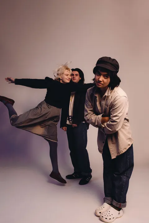 "This band feels like the real deal," says Mary In The Junkyard's Saya Barbaglia, her voice dripping in sarcasm. She's been friends with vocalist Clari Freeman-Taylor since the pair met as teenagers at a youth orchestra (playing viola and flute, respectively), while drummer David Addison met Clari in a previous project. "This feels more like we've accidentally formed a band of weird children," adds Clari.