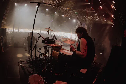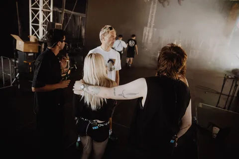 Photographer Vojtěch Mervart caught the band in full throttle – setting up, careening backstage, and delivering a typically blistering set to a crowd that swelled as the sun beamed down on Park 360. Later, Pavla Hartmanová tagged in to capture them exploring the rest of the site: grabbing a spin on the ferris wheel, soaking in sets from Wunderhorse and Biffy Clyro, and vibing to Fontaines D.C. as the evening rolled on.