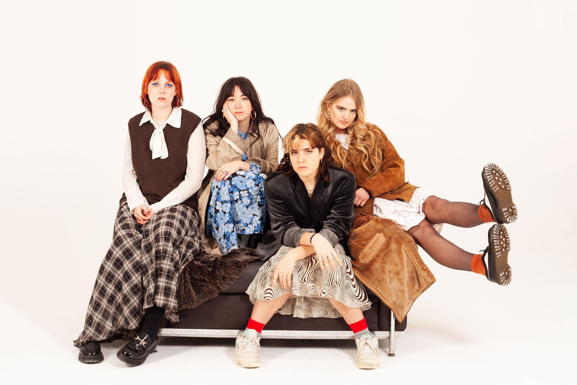 Having crossed paths via a Facebook group for the college that they were planning on attending when they left school, Chloe replied to a message that Annabel had posted, and the pair decided to meet up for a coffee at the Café Rouge in their local shopping centre. “I remember the first thing Annabel said to me: ‘Wow, you’re such a tall lady’,” Chloe laughs before Annabel doubles down on her statement, inciting laughter from the rest of the band. After scouting guitarist Leila Deeley at the same college, the trio eventually moved to Brighton and set their sights on making it as a band. They were, of course, missing a bassist until Annabel and Leila’s housemate Tippi Morgan came along. “Tippi is an absolute legend because she hadn’t even played bass before,” says Leila. Because of her extensive music knowledge and the way that she instantly clicked with the group, they asked her to learn bass guitar, and within a few months she was a part of the line-up.