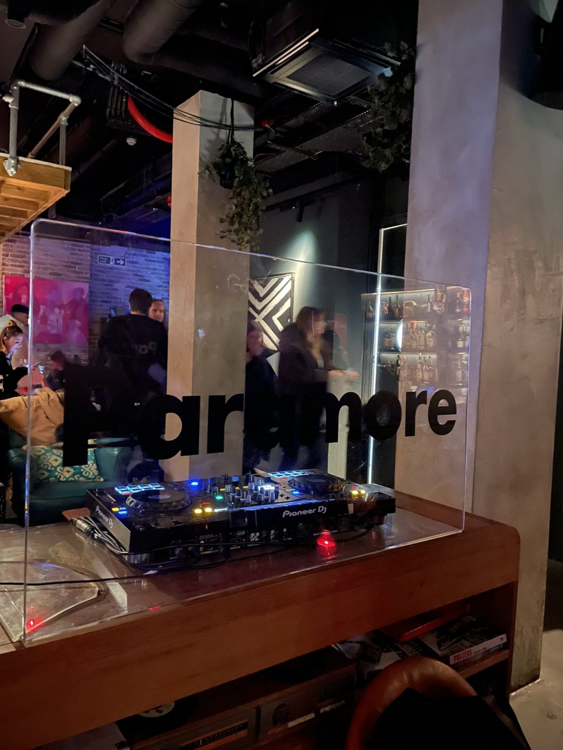 At 6:30pm, a good 50 of us - a mix of fans and Warner/Atlantic’s corporate team - are welcomed into their basement. There are plenty of bottles of complimentary beer on ice and trays of canapés to keep us fed and watered, and the place is modestly attributed to the host: a huge ‘This Is Why’ album cover banner for people to get a souvenir photo with, drinks coasters (and a single telly screen) decked out with the same artwork, and the plexiglass of the DJ booth marked by the band’s new sans-serif logo.