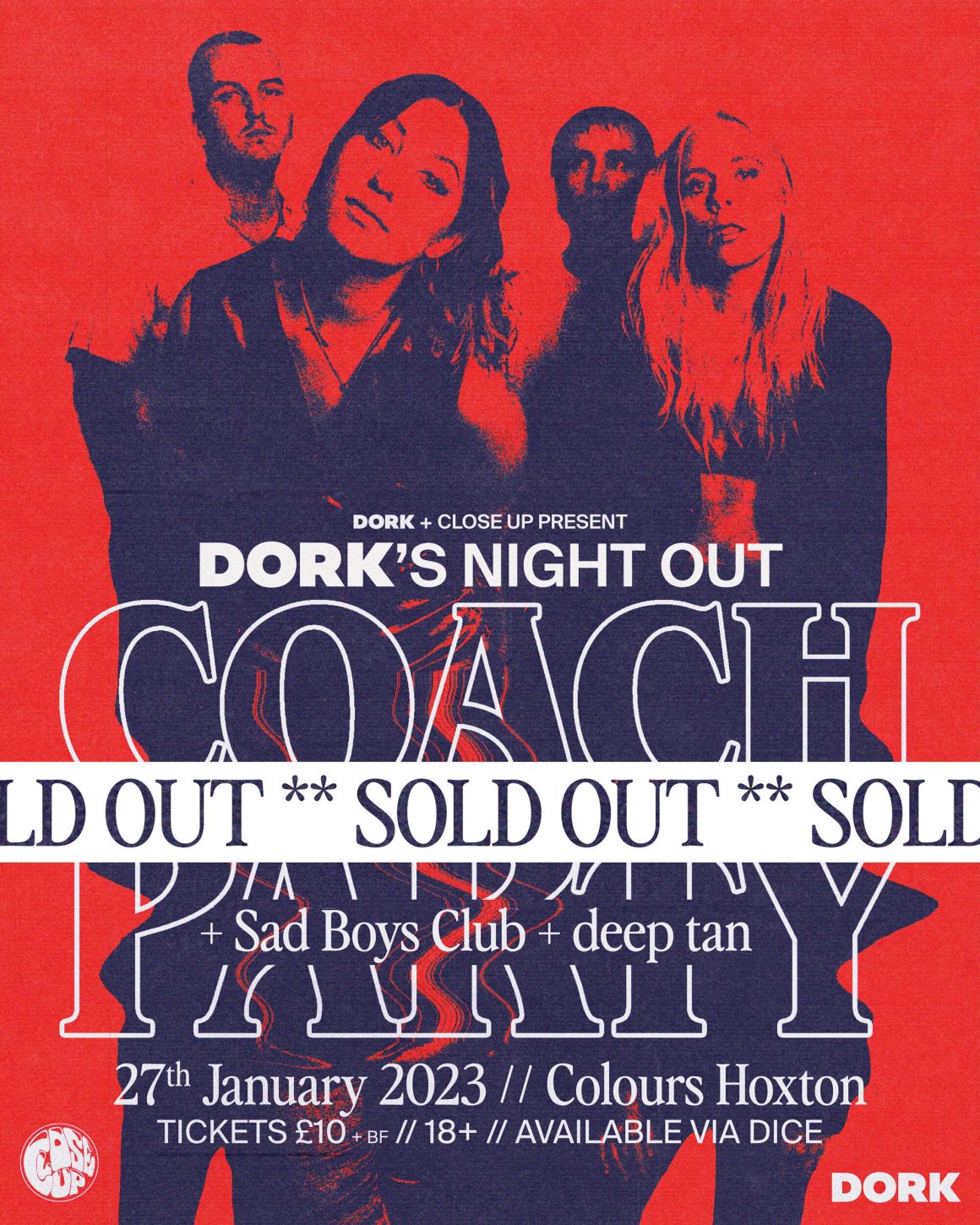 Sad Boys Club play Dork's Night Out on Friday 27th January at Colours Hoxton, London. Tickets are Sold Out, with any remaining tickets/returns available on a first-come, first-served basis via the DICE Waiting List.