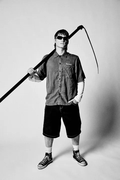 This willingness to engage with controversial religious imagery is a brave move. "Not yet," they respond when asked about backlash, before sharing an amusing anecdote: "A while ago, someone on Reddit tried to implicate us in the Pizzagate conspiracy" - a viral 2016 alt-right conspiracy about a paedophilia ring that operated out of a Washington pizza restaurant - "because we were releasing an EP through King Pizza Records and did the release show at Comet Ping Pong. James unwittingly fanned the flames by wearing a Thrasher skategoat shirt in the promo photo for the show. The Reddit post was like the Q Anon version of the Pepe Silvia scene in It's Always Sunny."