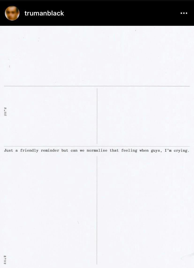 Though those posts have since been deleted - new era, after all - they linked up with other posts (also now deleted) from the band’s frequent creative collaborator Samuel Burgess-Johnson. They also featured the copy “Just a friendly reminder but can we normalise that feeling when guys, I’m crying”. No idea what that's about, yet.