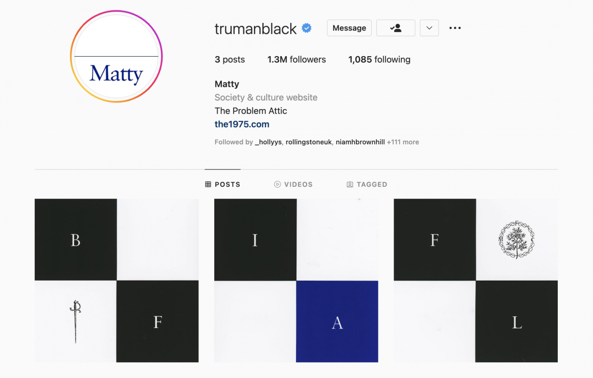 Alongside all this came the band's big return to social media. It started slowly, with the individual band members changing their profile pictures on Instagram to a delightful serif type version of their first names. Then, later in the morning, their main social accounts returned. Quickly, their Instagrams were cleared out, with previous posts all deleted.