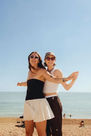 Their upcoming third album 'No Hard Feelings' does feel like that — as messy, honest and casual as a catch-up with your nearest and dearest. Even today’s interview takes on a similar quality, as the five of us – The Beaches plus Dork – sit down at a beach bar on Brighton seafront for an Aperol spritz (and an orange wine for Jordan). They’re not hungover, but they do inform us they partied the night before, and will be again at the end of their day of press, at a DJ set in London for the launch of single 'Last Girls at the Party'.