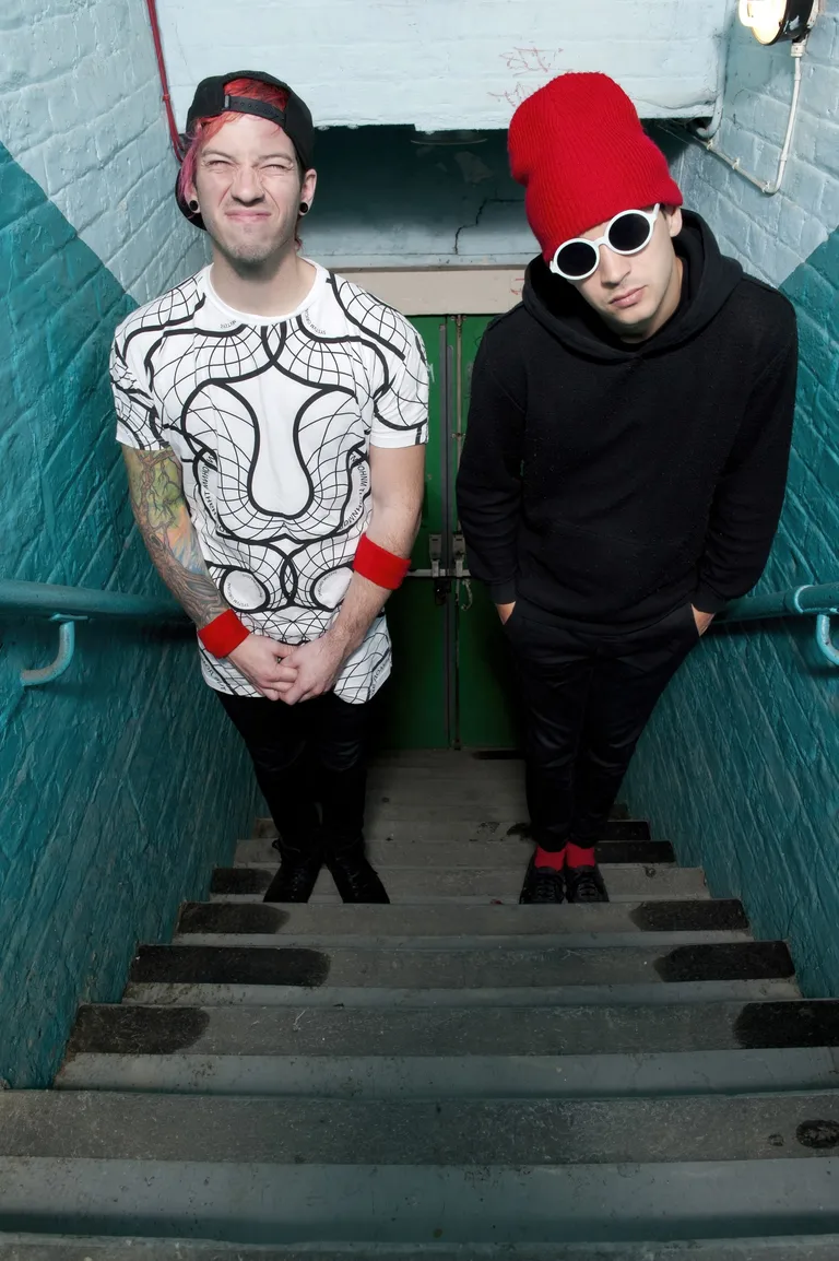 In celebration of the ten-year anniversary of Blurryface, we’ve gone into the archives and dusted off this 2015 interview with Twenty One Pilots. The original chat happened ahead of their tiny headline show at London’s Boston Music Rooms, a few days before the game changing album was released. A string of singles – ‘Ride’, ‘Fairly Local’, ‘Tear In My Heart’, ‘Stressed Out’, ‘Lane Boy – were already causing a buzz within the rock world, but nothing had truly taken off. Yet.