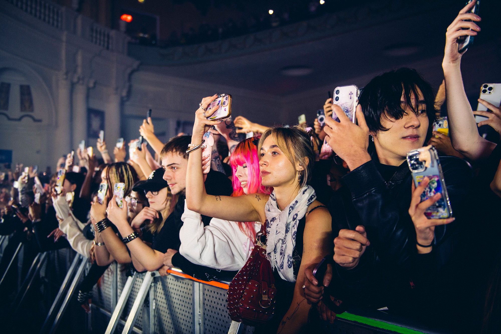 2hollis' music, an amalgamation of the internet-popular cult collectives who came before - think PC Music, Opium, and Drain Gang - attracts fans from all of those spaces. For a moment, as we're watching teenage boys with phones in their hands, flash-on recording, clawing at the stage with as much ferocity as the girls, and seeing mosh pits form as often as we're hearing lung-busting screams, it feels like 2hollis could (one day) be bigger than all of them.