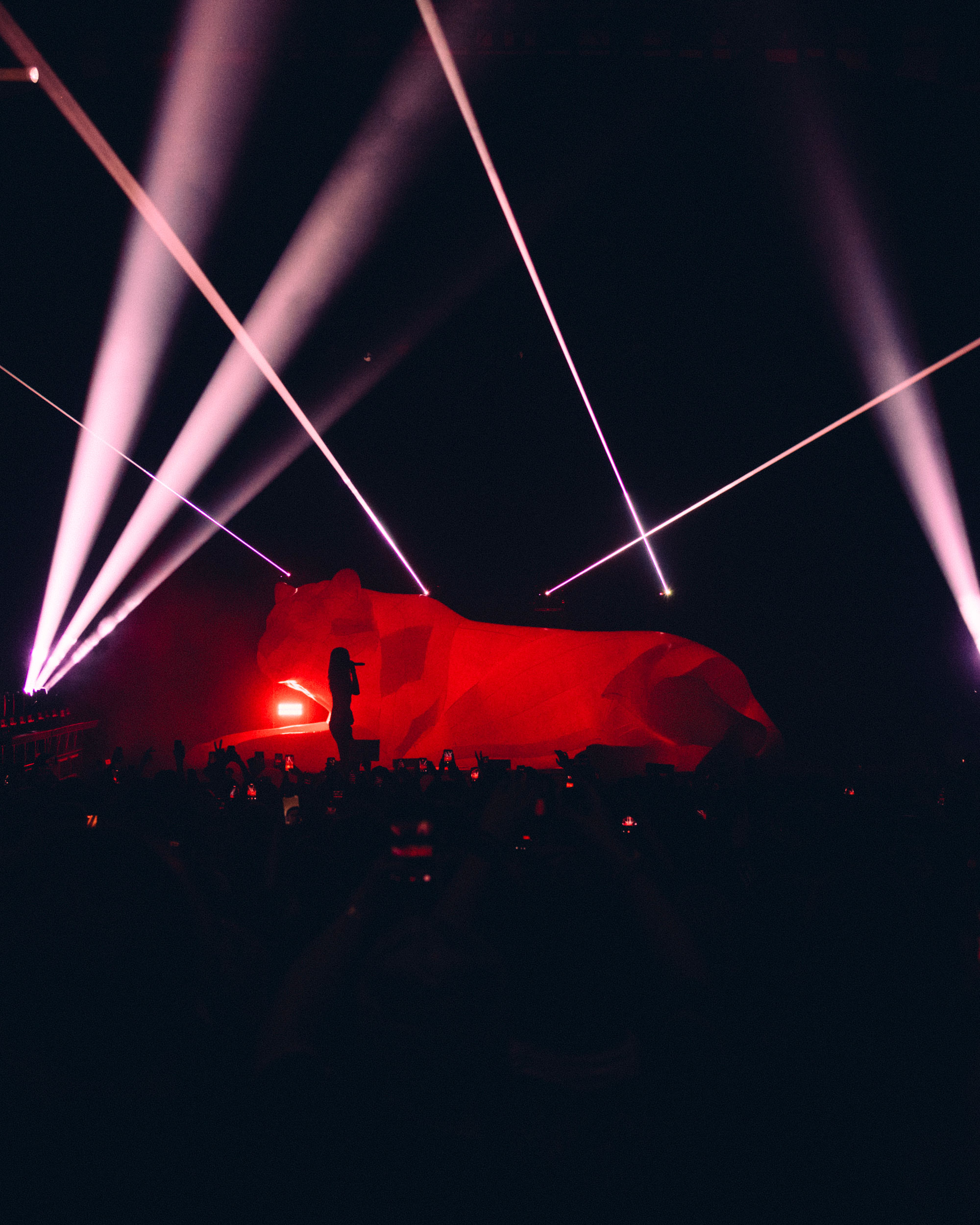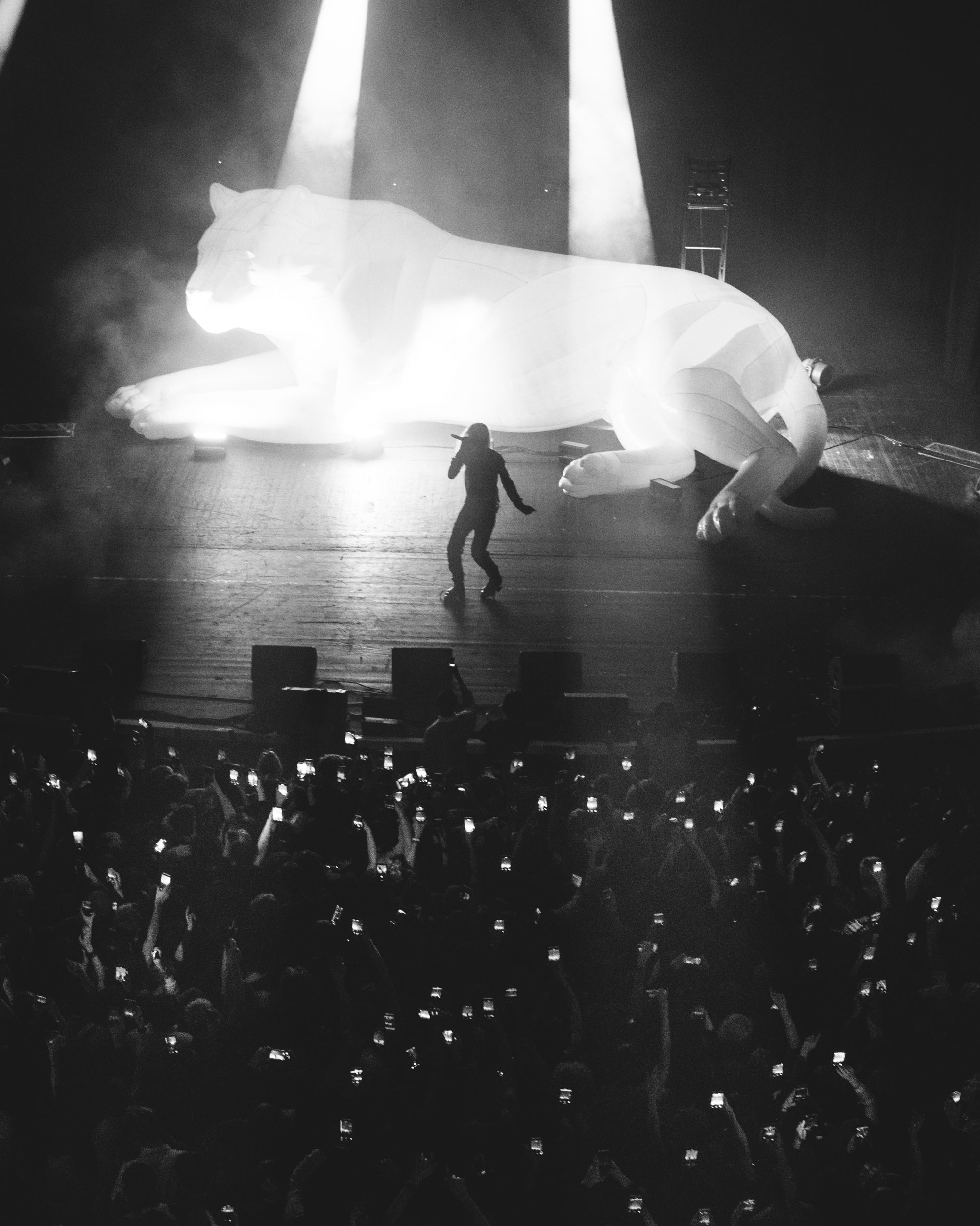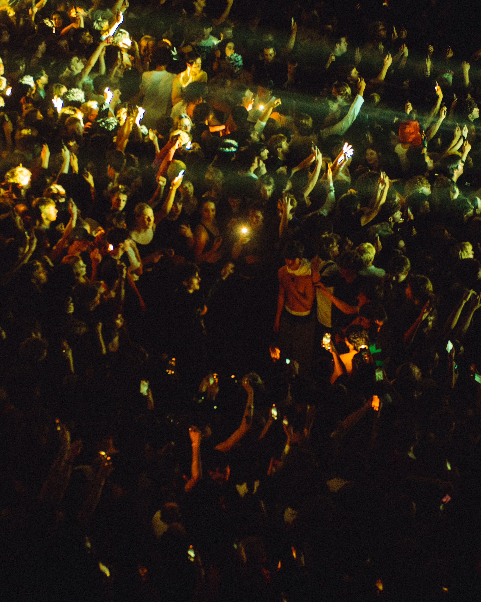 The show comes to a halt (for the first time) after things get too rowdy during the unreleased 'DOGS', and he leaves the stage while, erm, rain sounds play, presumably to calm things down a bit. This happens several times throughout the night, and each time Hollis returns, he's wearing less and less clothing until he's down to just his jeans. When you've got a set this rammed full of favourites, though, chill vibes weren't to be expected.