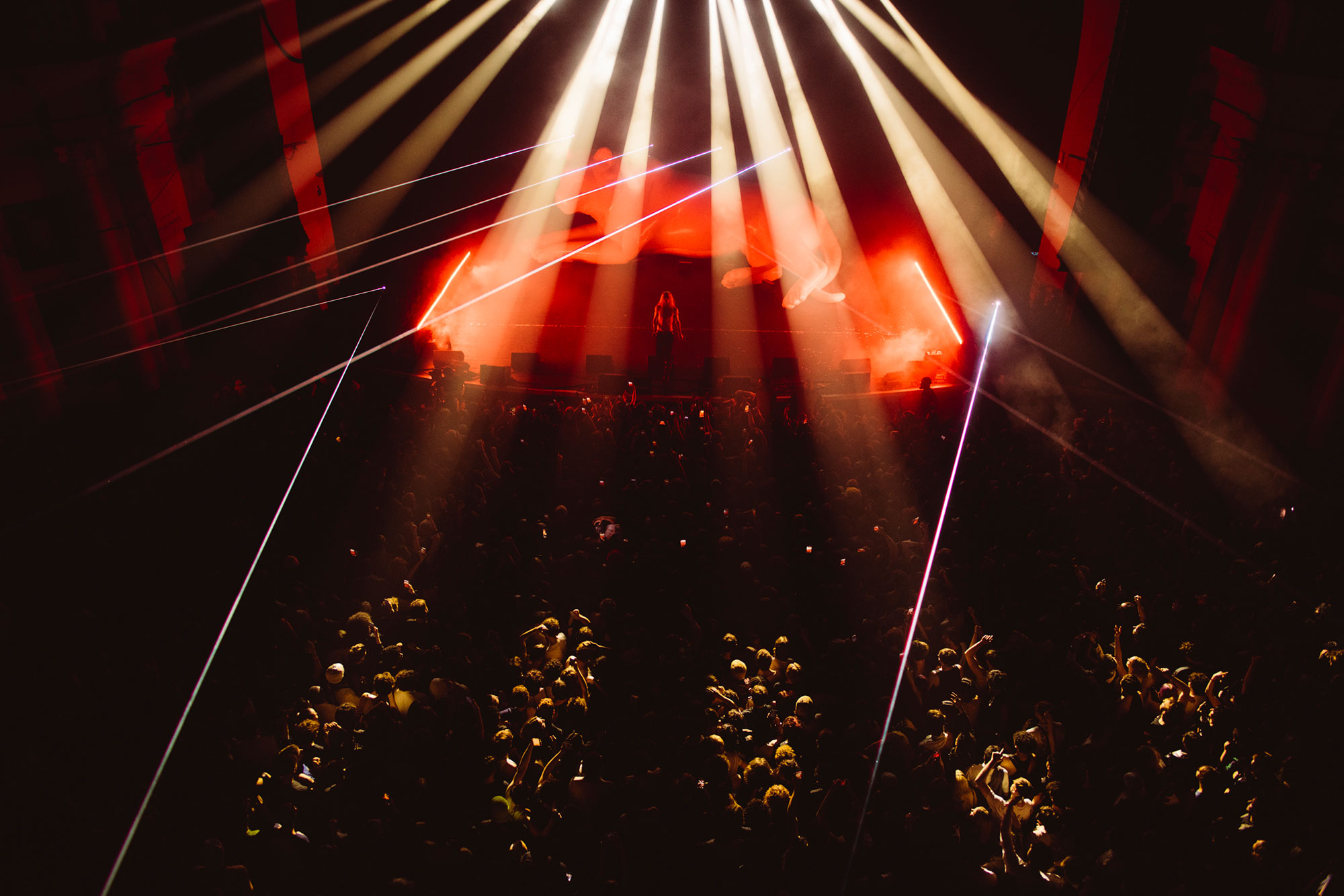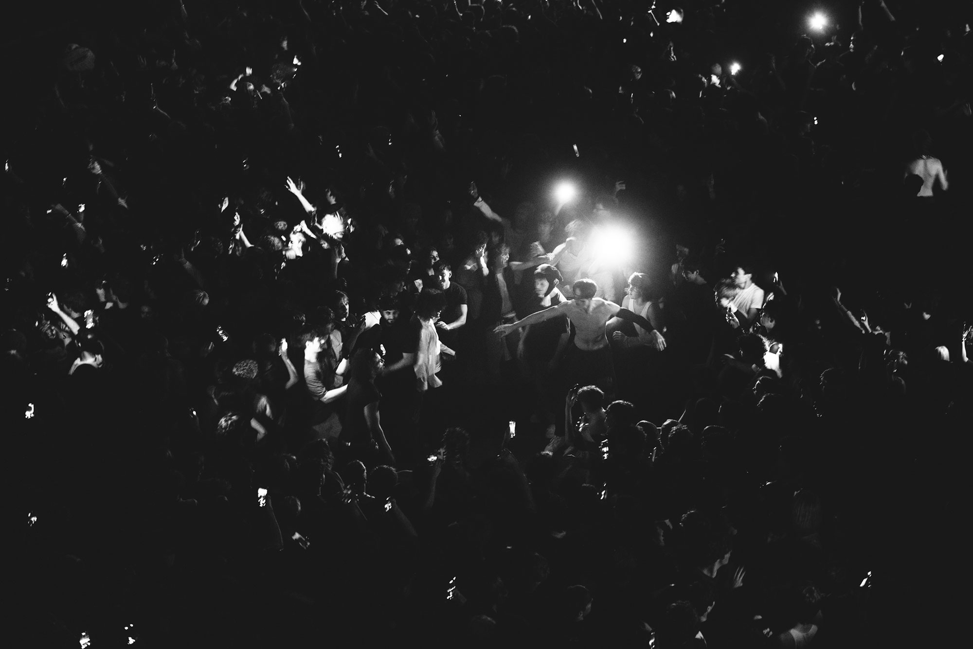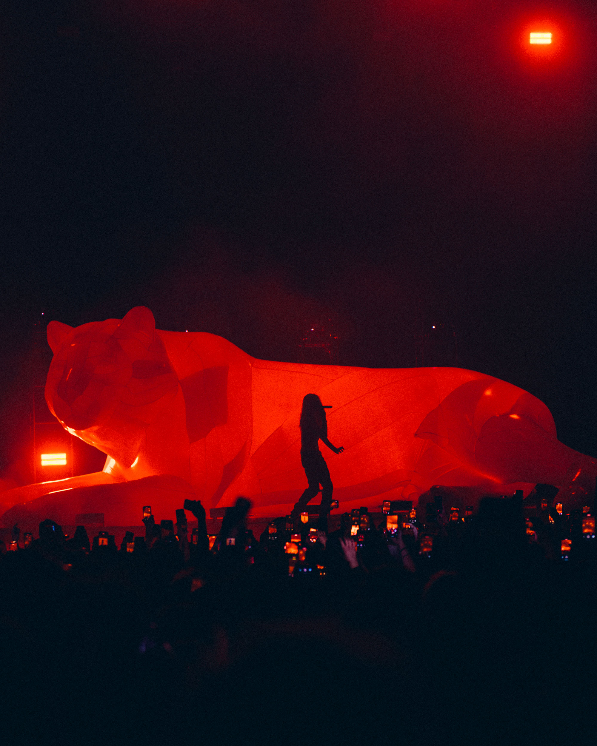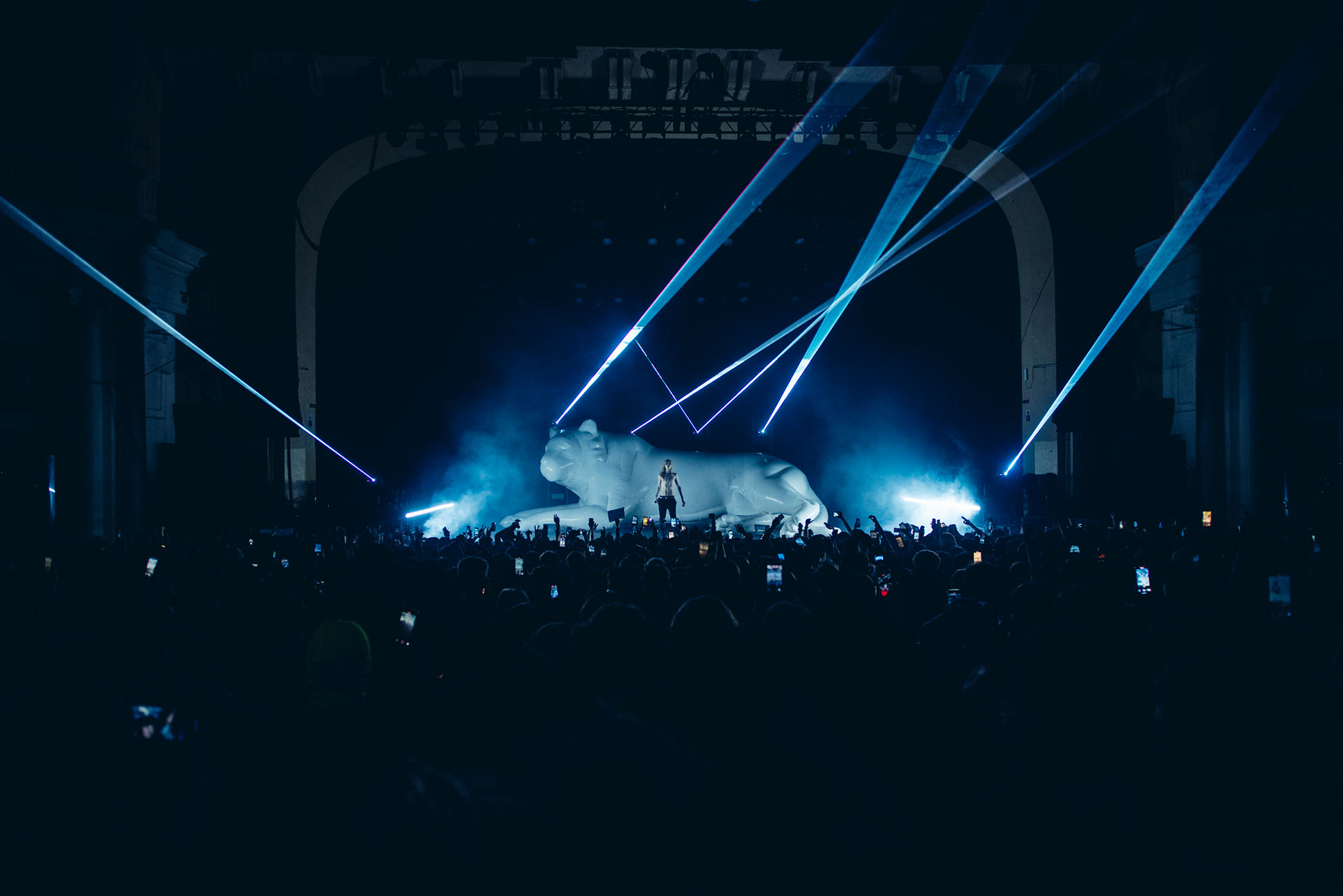 The show comes to a halt (for the first time) after things get too rowdy during the unreleased 'DOGS', and he leaves the stage while, erm, rain sounds play, presumably to calm things down a bit. This happens several times throughout the night, and each time Hollis returns, he's wearing less and less clothing until he's down to just his jeans. When you've got a set this rammed full of favourites, though, chill vibes weren't to be expected.
