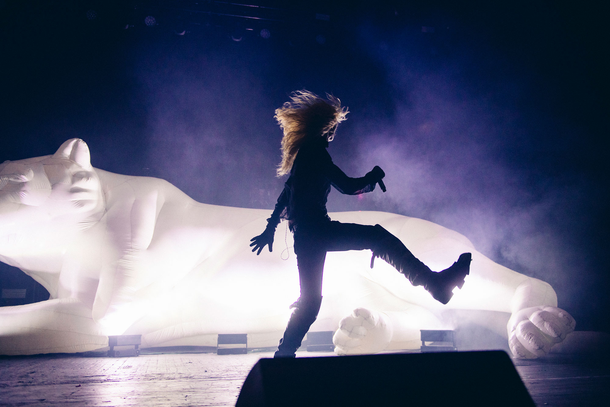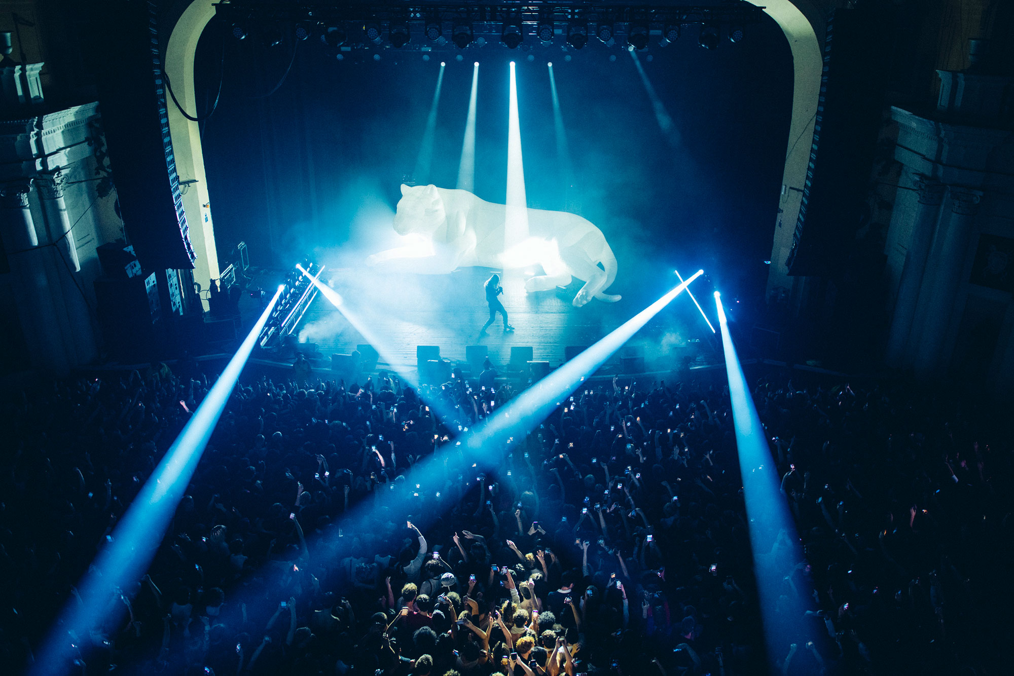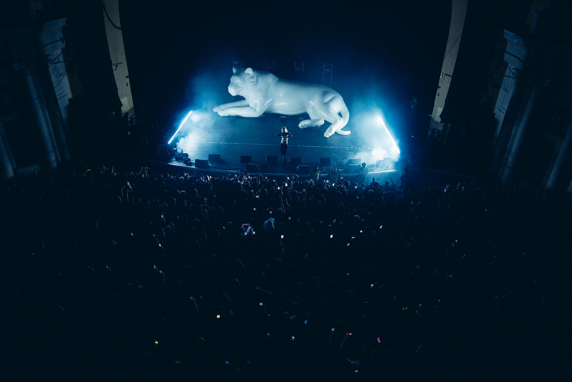 Inside, excitement reaches fever pitch when the one set adornment - a giant inflatable white tiger - is revealed. Obviously, it's nothing compared to when 2hollis arrives. Bounding on stage to 'flash', looking like a very high fashion wizard in his Alexander McQueen cape, the track's chorus refrain of "Holli wanna be a star" feels less like a mission statement and more like a prophecy fulfilled in the months since its release.