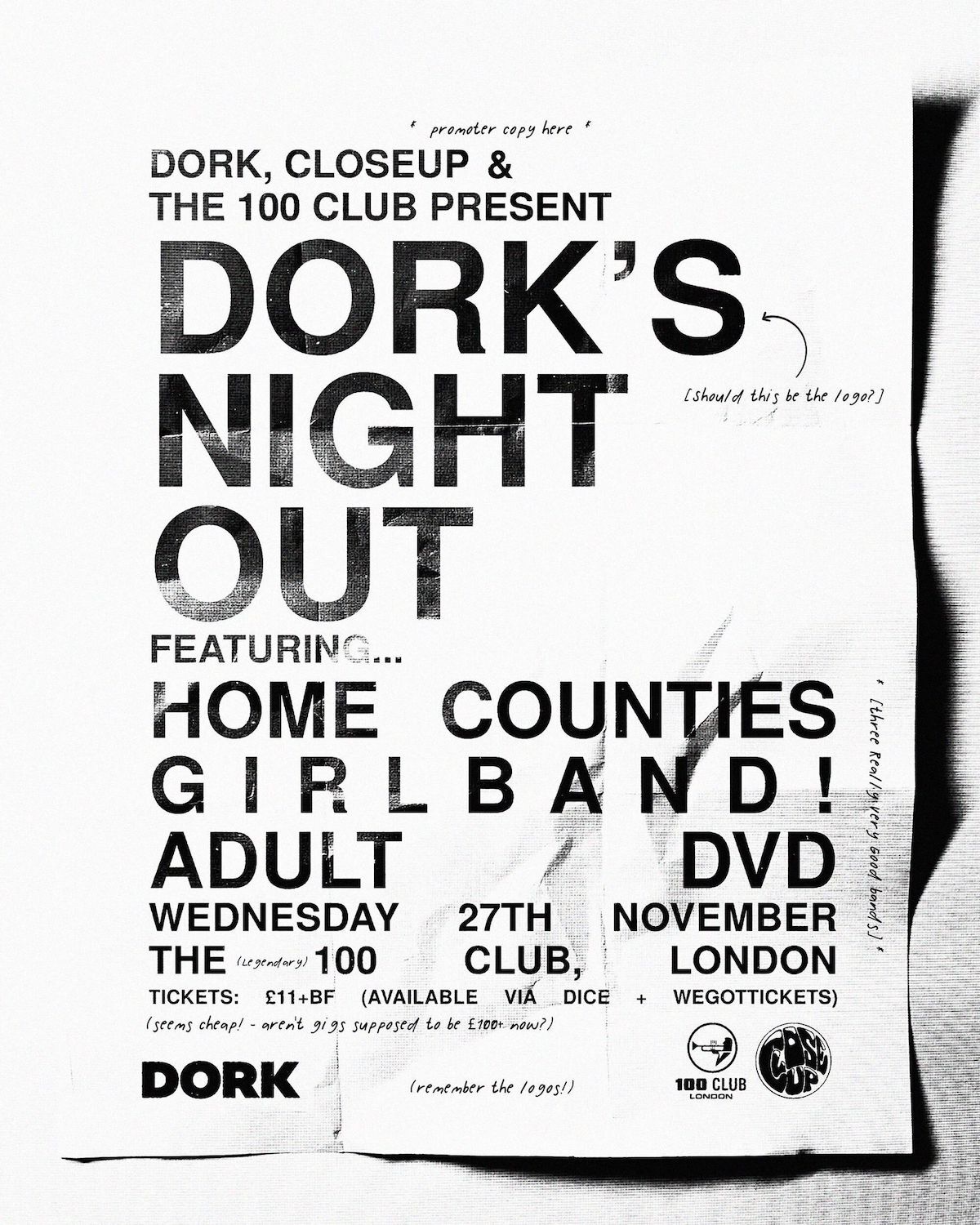 Adult DVD have joined Dork's Night Out at London's The 100 Club this November