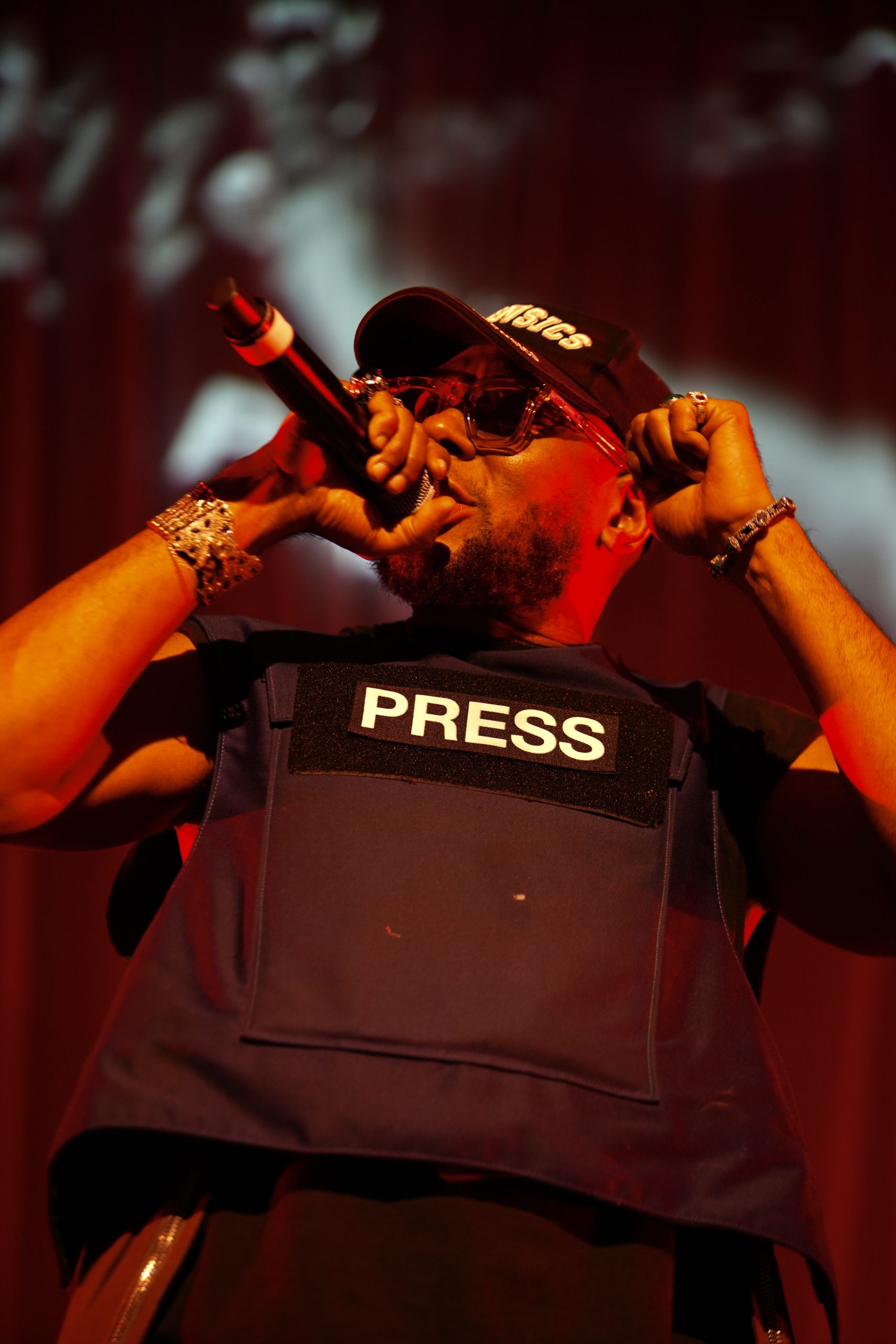 A ‘PRESS’ bullet-proof vest clad Yasiin Bey took to the stage for their set, leading chants of “Free Sudan! Free Congo! Free Palestine! And Free WiFi!”, before Ramy Youssef delivered a stand up monologue. Surprise guest FKA Twigs, meanwhile, brought the show to a close, performing an acoustic version of ‘Cellophane’.