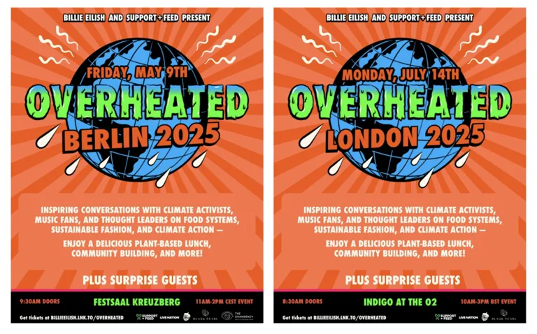 Billie Eilish and Support+Feed are set to host OVERHEATED climate action events in Berlin and London this year.
