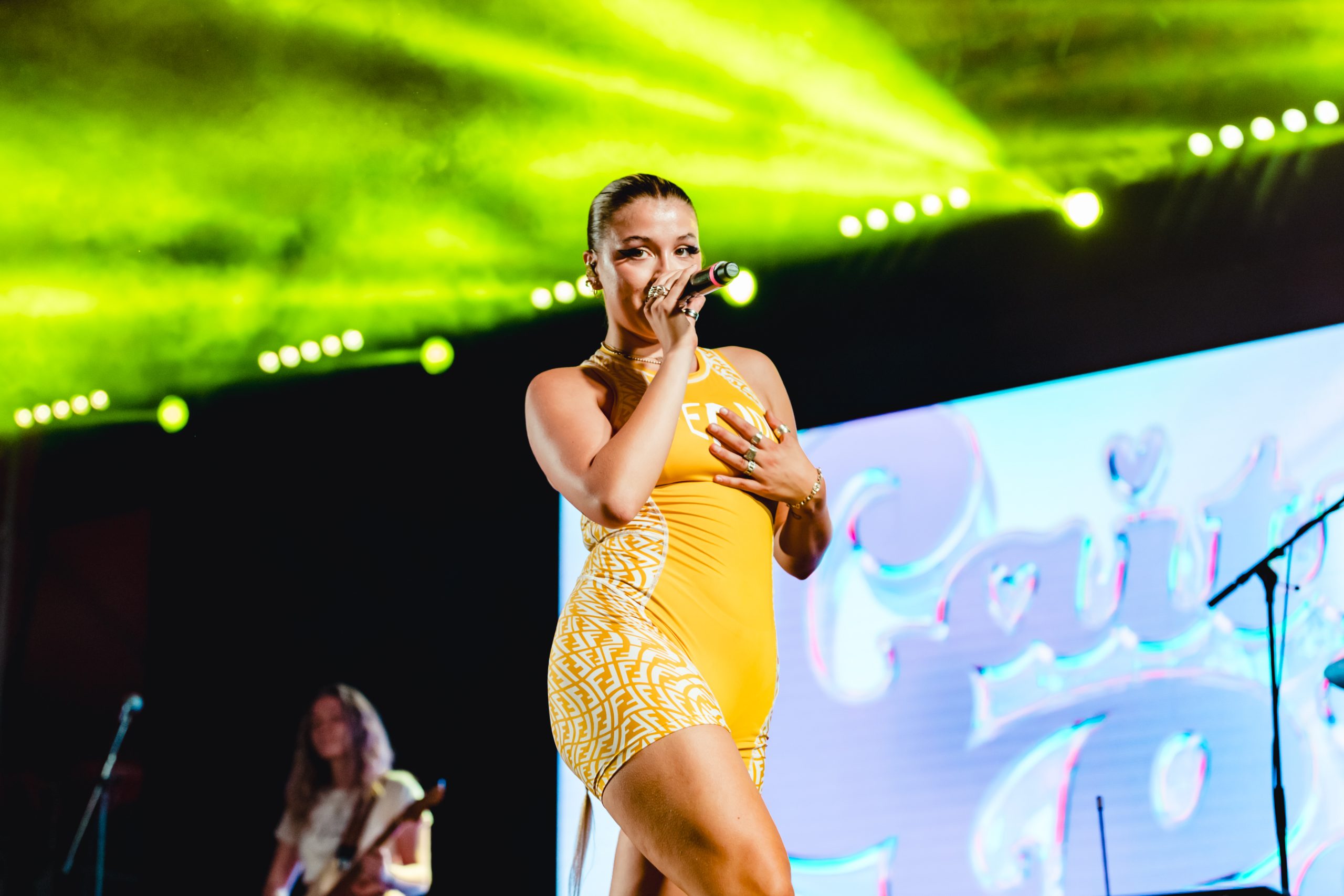 If one pop star has dominated this festival season, it’s Caity Baser. Flying out every weekend, she’s gone from strength to strength, climaxing at this full circle moment at Reading. Last year, she played at the BBC Introducing stage to a full field. Now she’s graduated to the BBC Radio 1 Dance Stage, packing it to the rafters and bringing the bangers she’s spent all summer warming up.