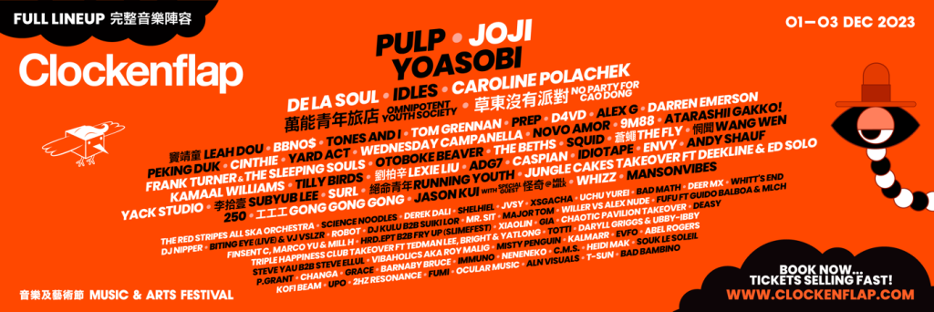 Clockenflap Music & Arts Festival will take place from 1st-3rd December at Central Harbour Front, Hong Kong. Find out more at Clockenflap.com.