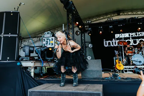 Considering the fact that she’s only been releasing music as a solo artist for a few months, you’d be forgiven for assuming that Cole Bleu might still be finding her feet. Instead, already a confident performer in her own right, the Washington-via-Liverpool 22-year-old delivers a self-assured set over at the BBC Introducing stage. Leaving behind the alt-rock tones of previous venture The Let Go, Bleu steps into a colourful pop persona that turns an early half-hour timeslot into a bubbly but streamlined show of its own.
