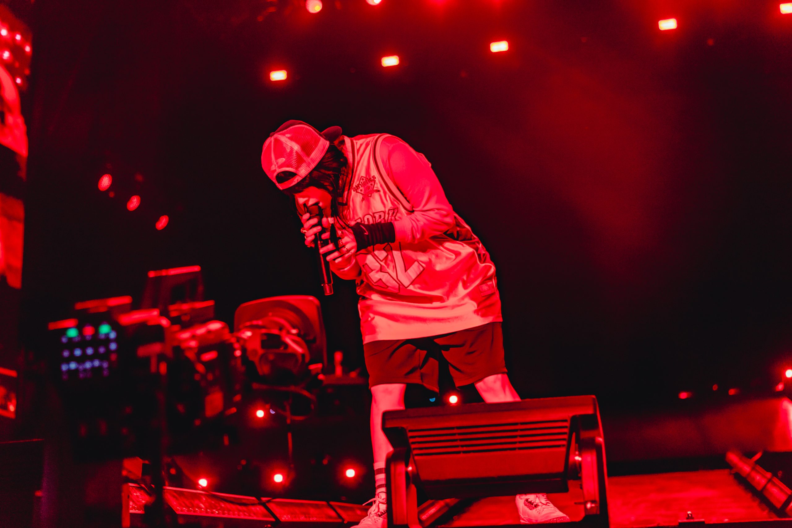 Rina can do it all though, and the vibes aren’t heavy for long, as she moves into the portion that can only be described as slay. ‘Comme des Garçons’ opens with an on stage change into a blazer and head mic behind a newspaper dubbed ‘MOTHER TIMES’ emblazoned with an ‘XS’ ad and the headline ‘I SIMPLY CAN’T SLAY ANY LESS’, and you know, she can’t. Cockiness reigns supreme during the 00s deep house fuelled banger, before finishing on platinum-on-the-internet hits ‘XS’ and ‘This Hell’, like MUNA dedicating the latter to the queer community.