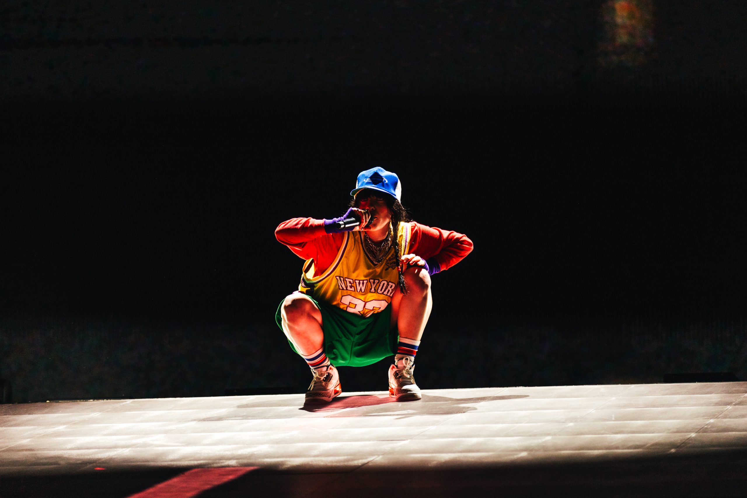 Still, the show doesn’t feel tired or overdone. The punters in the front rows have been firmly parked since the gates opened, and the screams from down there when she takes to the stage are visceral. Opening with her first proper hit ‘bury a friend’, she’s electric. Once baffled by the huge crowds, she now embraces them, pacing the runway and running up the backlit ramp that fills the stage without ever losing her breath, as she rattles off ‘I Didn’t Change My Number’, ‘NDA’ and ‘Therefore I Am’.