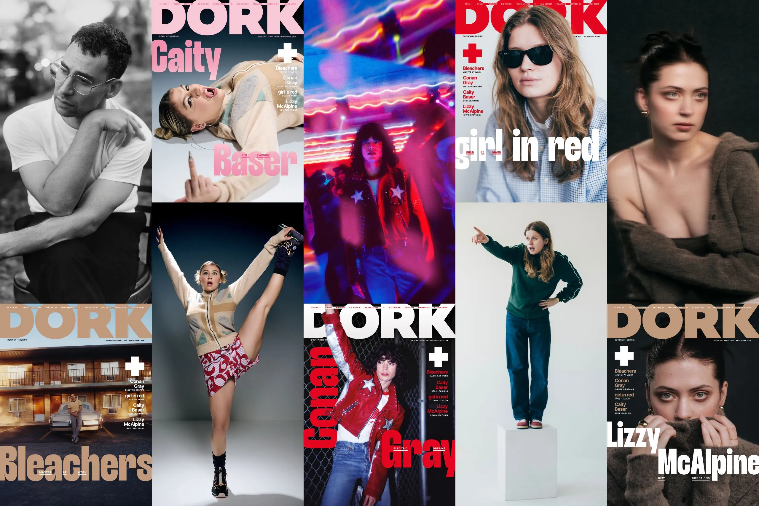 The April 2024 issue of Dork is out now, featuring five fantastic cover stars - Bleachers, Caity Baser, Conan Gray, girl in red and Lizzy McAlpine. It's quite literally (almost certainly) our biggest edition yet.