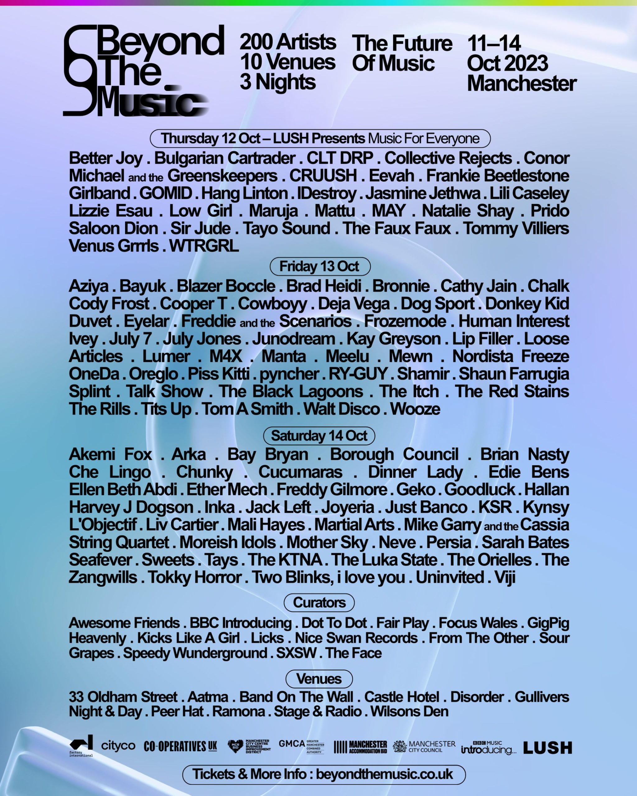 It's part of a wider lineup featuring more acts, including Cowboys, Human Interest, Lip Filler, Shamir, The Rills, Tom A Smith, Walt Disco, Borough Council, l'objectif, The Orielles, Tokky Horror, Viji and more.