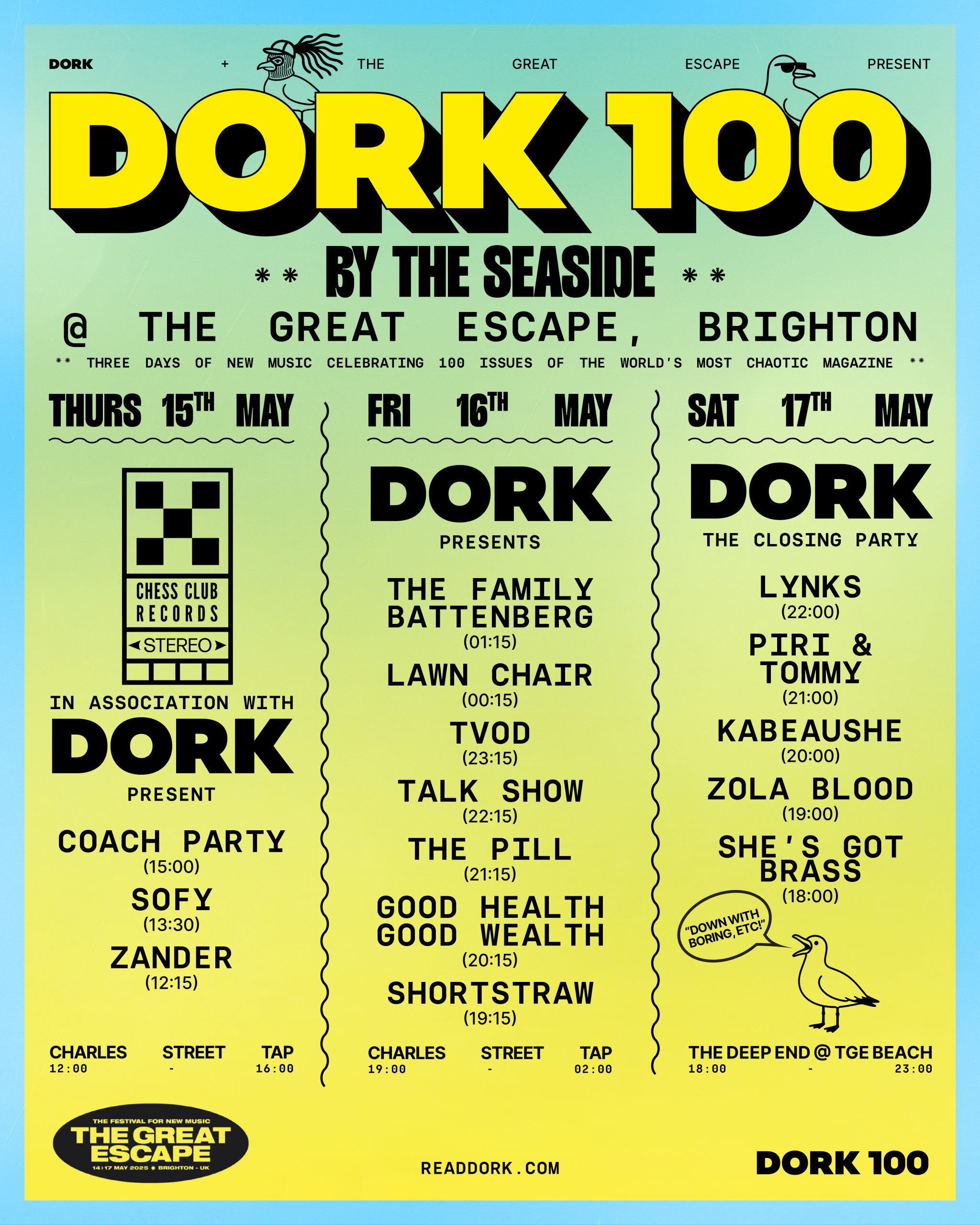Dork is heading back to Brighton for The Great Escape this May - and as it's our big 100th-issue celebration, we're bringing along three days of live chaos, bangers, and potential seagull incidents. Consider this the first leg of a roadshow style warm-up lap for a summer of Dork 100 madness.
