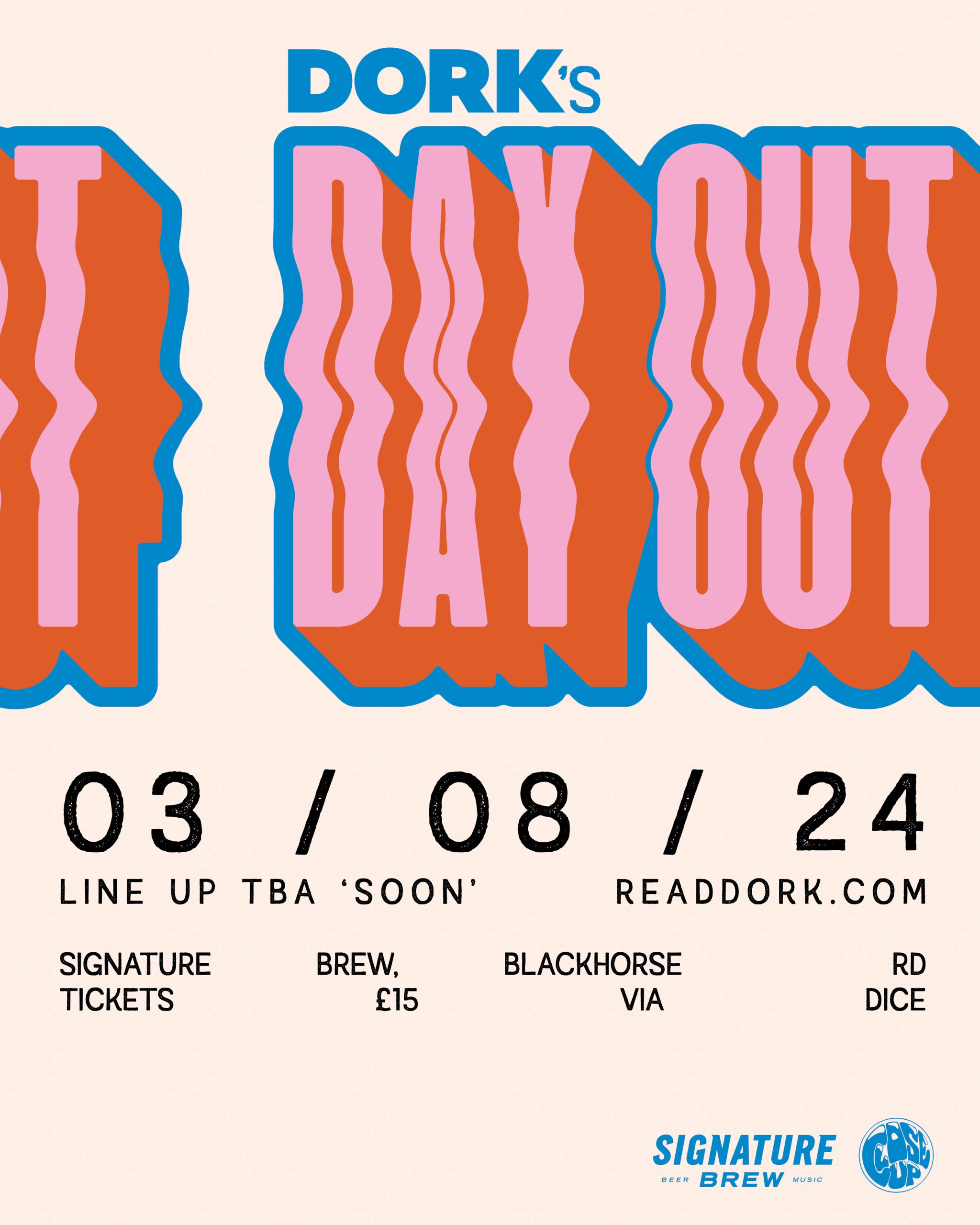 Dork's Day Out will take place on Saturday, 3rd August 2024, with a bill packed with our favourite bands and artists in an all-day extravaganza of live music. We'll start telling you who you can expect to see over the coming weeks, but if you want to grab tickets in advance before they all go, you can grab them for the bargain price of £15 + bf from Dice, here.