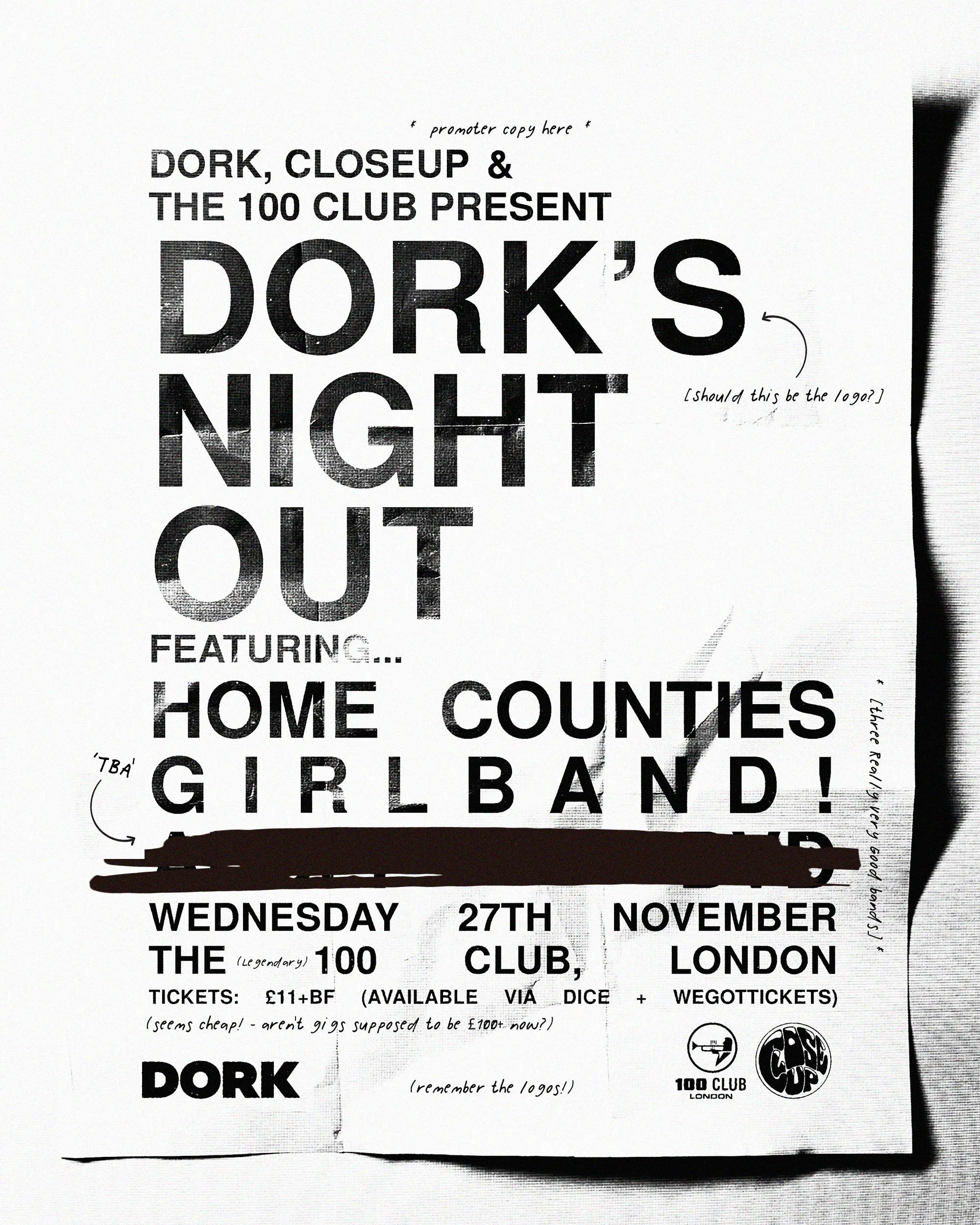 Dork's Night Out is bringing Home Counties and GIRLBAND! to London's The 100 Club this November