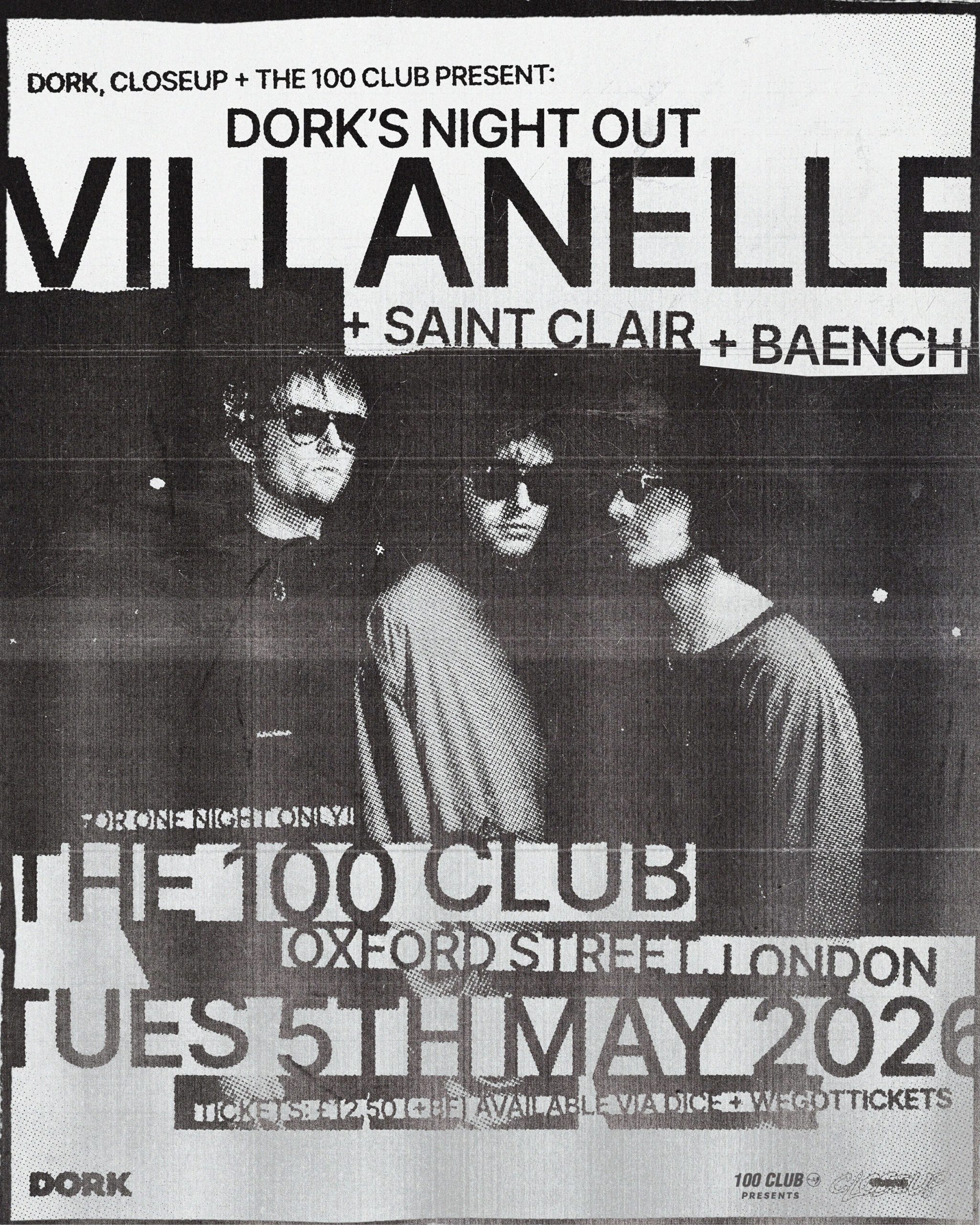 Dork’s Night Out is heading to The 100 Club this May with VILLANELLE, Saint Clair and BÆNCH