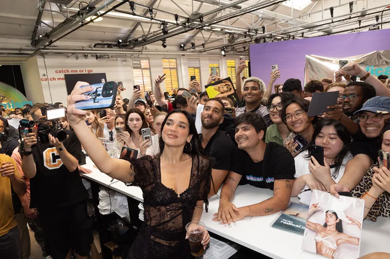 Dua Lipa has surprised fans at her Radical Optimism pop-up store in Shoreditch ahead of her sold-out Wembley Stadium performances.