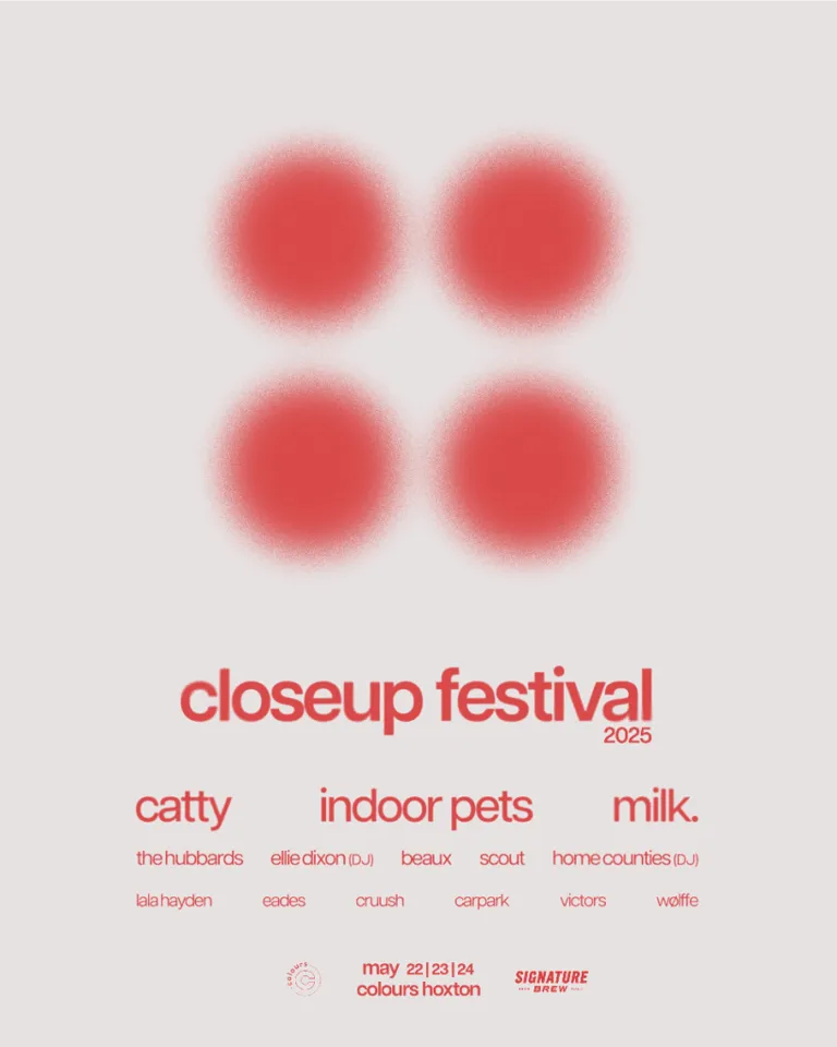 Ellie Dixon and Home Counties join CloseUp Festival's tenth anniversary as resident DJs alongside headliners CATTY, milk., and Indoor Pets.