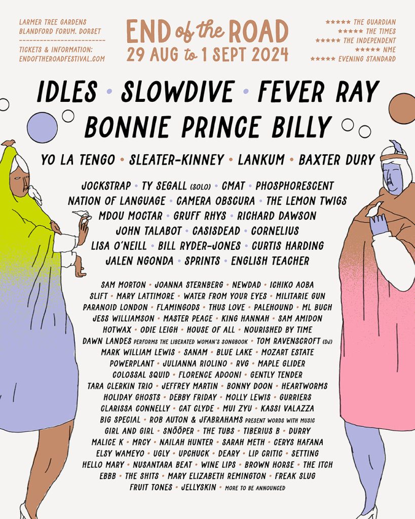 The event will run from 29th August - 1st September at Larmer Tree Gardens, with further sets from Bonnie “Prince” Billy, Yo La Tengo, Sleater-Kinney, Lankum, Baxter Dury, Jockstrap, CMAT, John Talabot, Nation of Language, Mdou Moctar, Florence Adooni and CASISDEAD.