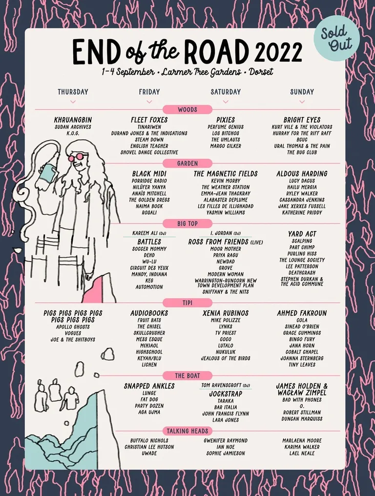 End of the Road takes place in Larmer Tree Gardens from 1st-4th September - check out the day/stage splits below.
