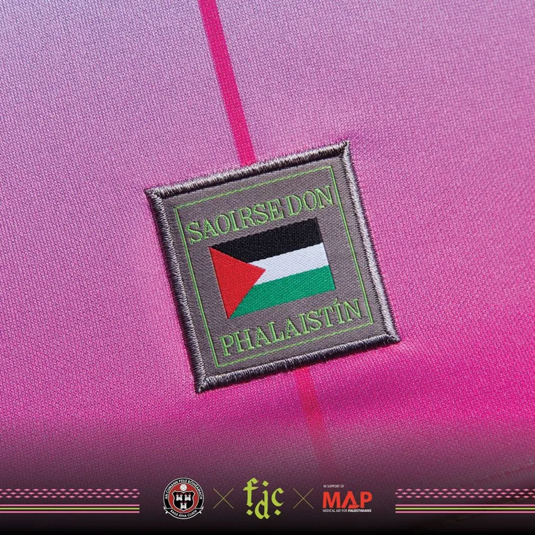 The jersey will be available at Dalymount Park on 6th and 7th December from 4-6pm, alongside exclusive items including limited edition Fontaines D.C. scarves. Profits will support Medical Aid for Palestinians' emergency response action.
