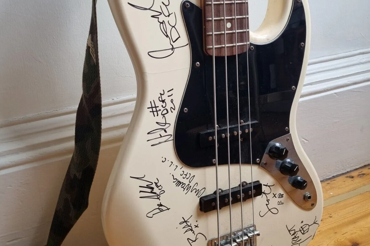 The one-of-a-kind signed bass guitar was signed by both bands during their 2011 summer tour in the USA, with bidding currently sat at £5400. Click here to check out the auction.
