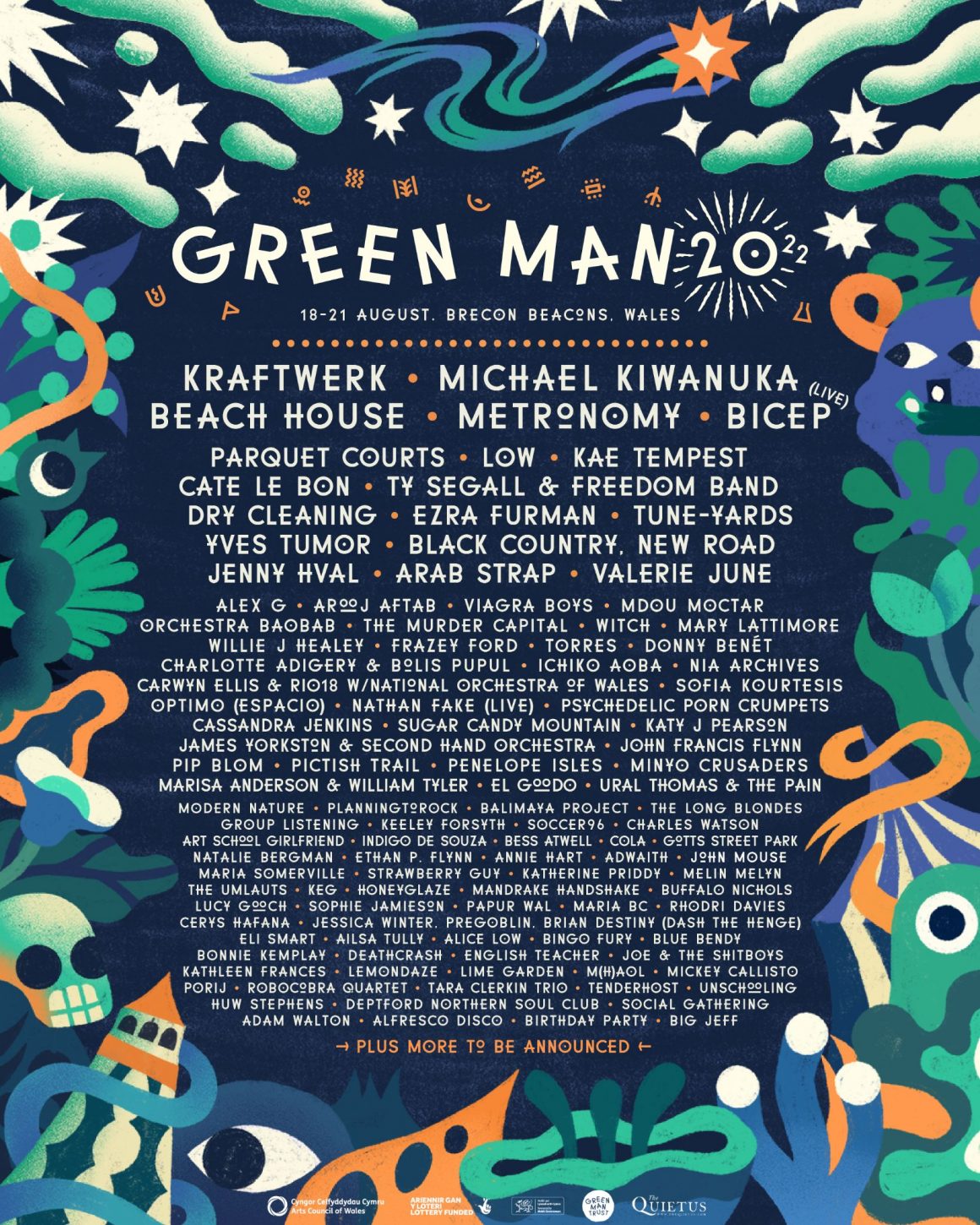 Green Man 2022 will be headlined by Michael Kiwanuka, Kraftwerk, Beach House and Metronomy, and takes place between 18th and 21st August. You can check out the full line-up in the poster below.