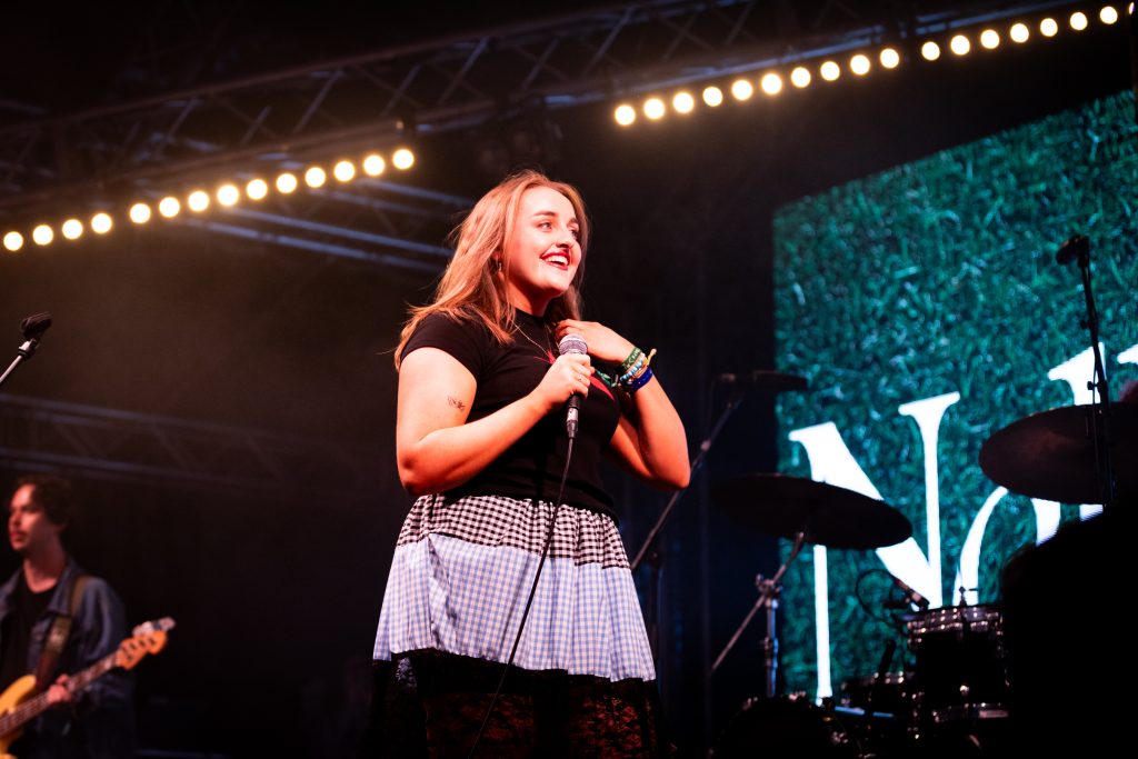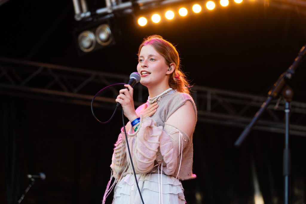 The rest of the supporting lineup for Haim’s headline show at All Point East has also been carefully curated to get the crowd as Haim-worthy as possible. The Cupra North tent plays host to Australian electro-pop party starters Confidence Man after Romy’s deliciously feel-good set while the L’Oreal Paris stage honours the band’s more folk-rock inspirations. Paris Paloma starts her set with the hushed gloom of ‘Notre Dame’ before the haunted, rugged ‘Mulled Wine’ brings a quiet over the buzzing festival crowd. Elsewhere, Nell Mescal’s set is far more chaotic. “There’s too many of you here, go away,” she beams after the raucous reaction to ‘Cutting Ties’ while ‘Punchline’ and ‘Homesick’ have bloomed into swaggering festival anthems in recent months. New song ‘Teeth’ sees that assurance continue. A smirking revenge anthem about someone reading her diary, she twists vulnerability into snarling power.