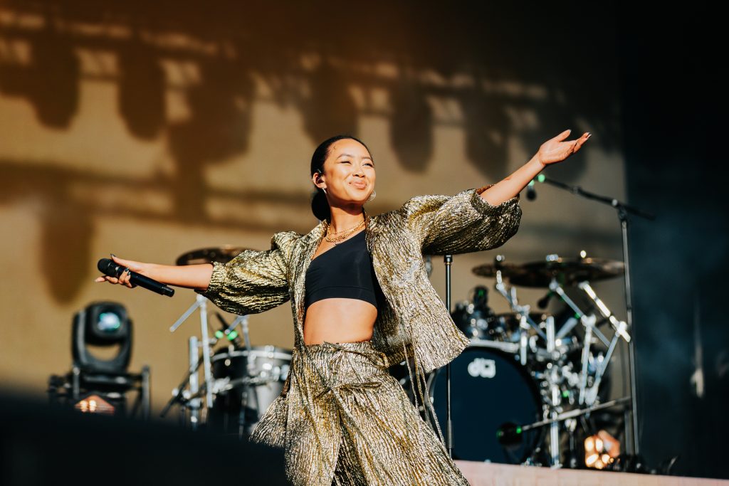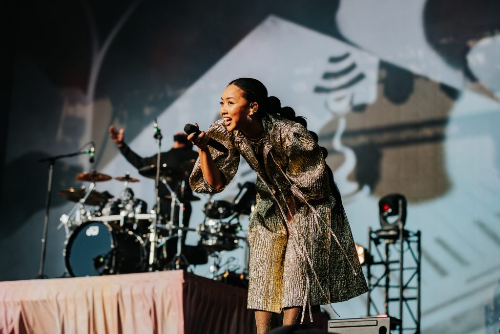 Back on the main stage, Griff is playing her first and last festival of the season after a stint touring stadiums with Coldplay. She’s always been a powerhouse pop performer, but there’s a newfound glee running through today’s set, as she embraces the carnage of these big, outdoor shows. ‘Head On Fire’ and ‘Black Hole’ are the sort of charged sunshine bangers that are perfect for days like this, while new single ‘Vertigo’ takes self-doubt and turns it into euphoria, via glistening pop hooks. “I’m just here to have a good time,” she grins.