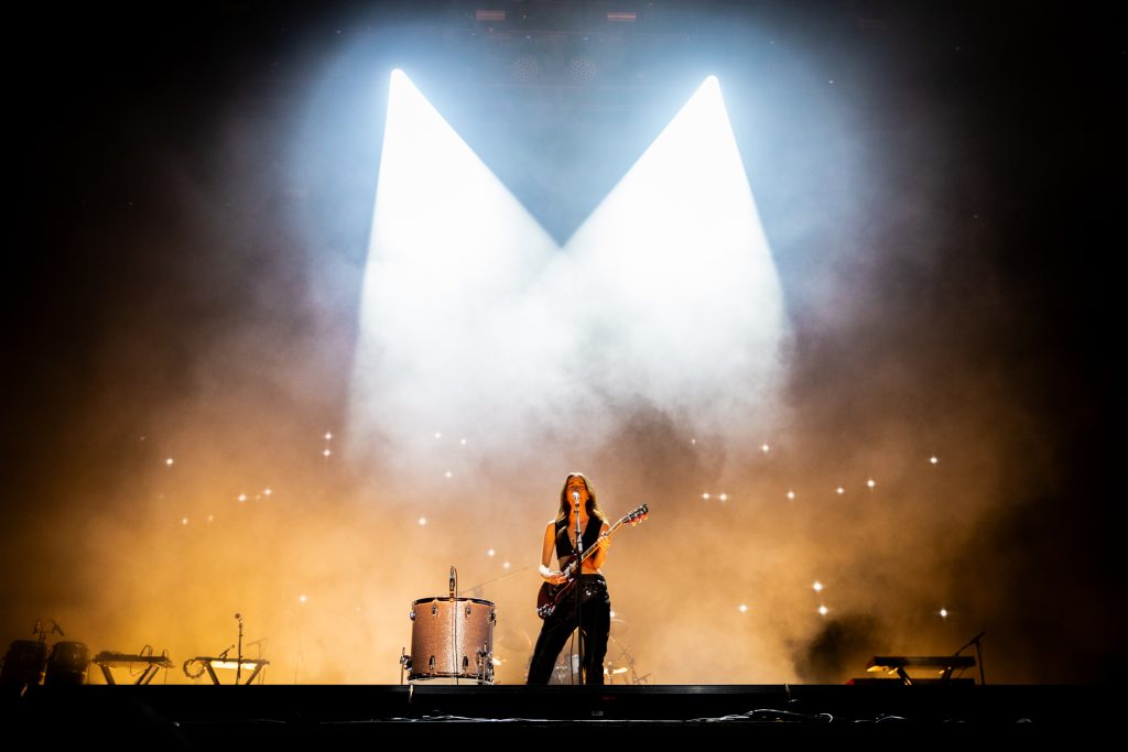 According to Alana, there are three things everyone needs to do at a Haim gig. Dance your heart out, sing your heart out and “have the best fucking night”. The band make that really easy, with a glorious set that’s a little nostalgic, a little sentimental and a whole lot of fun. Coming onstage after Fergie’s hammering ‘London Bridge’, the trio launch straight into ‘Now I’m In It’ with its big communal singalong and three-way drum breakdown. Este cracks up at just how loud the reaction is from the crowd before the dreamy ‘I Know Alone’ morphs into a sax-laden, pop-belter, complete with a smirking dance routine.