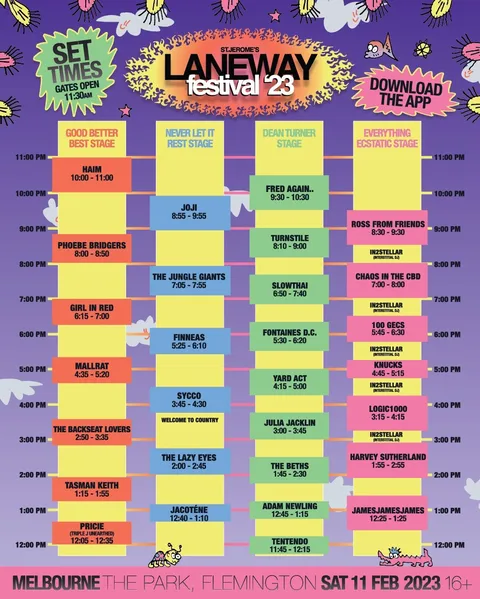 Laneway Festival have unveiled the set times for its 2023 edition, with the festival set to kick off on February 4th in Brisbane.