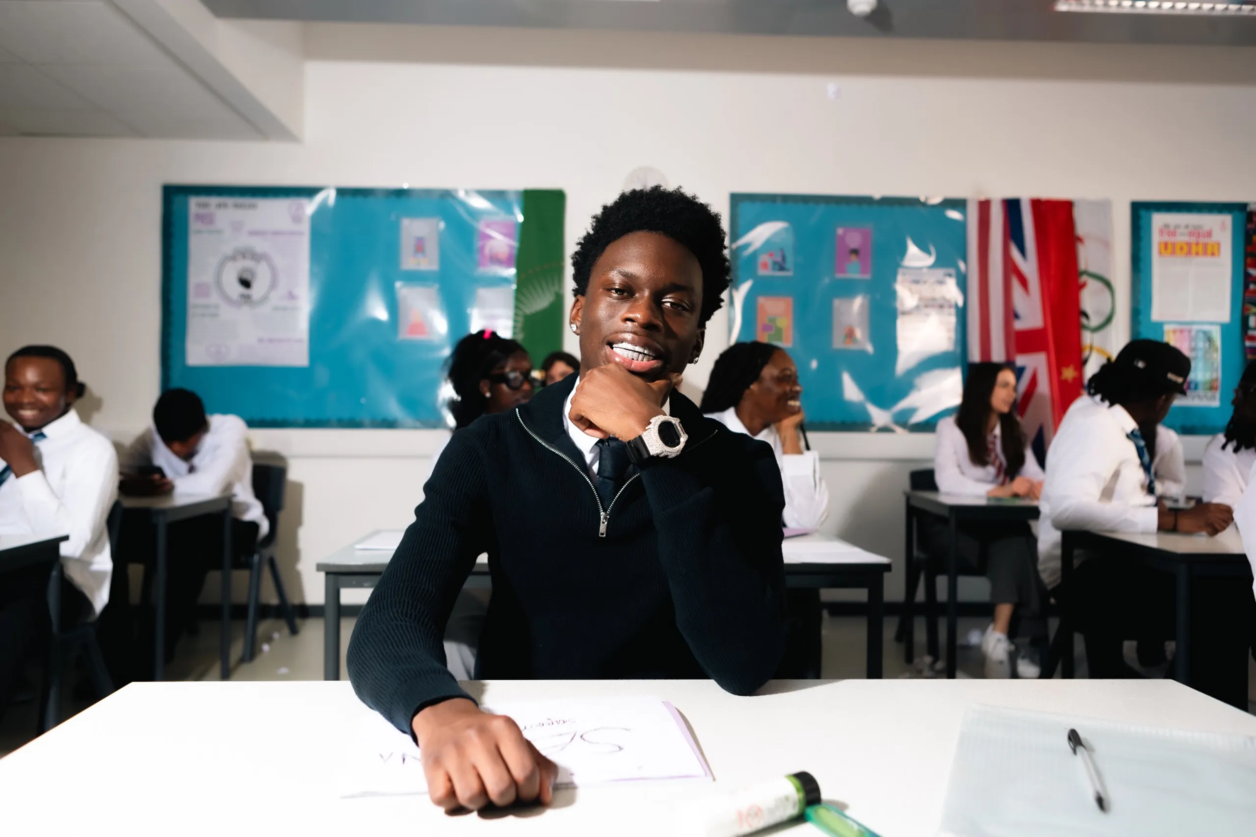 The rising UK rapper showcases a high-energy school chase sequence in their latest music video.