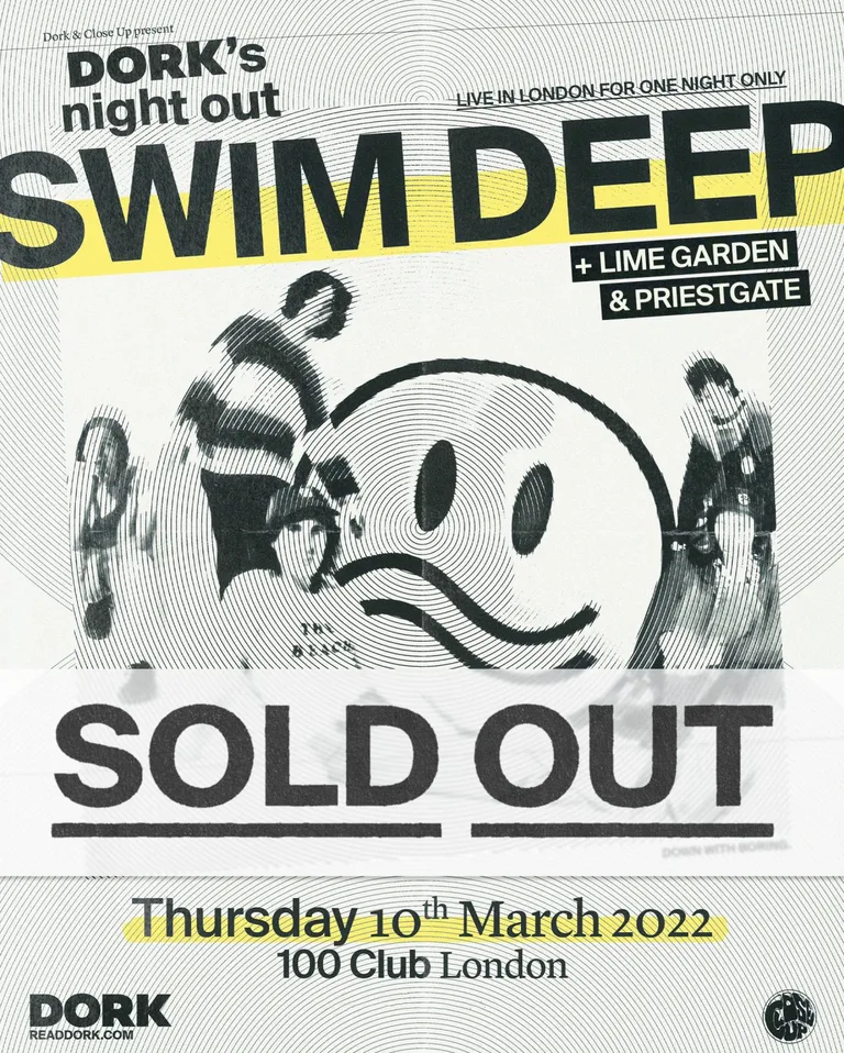 Fresh off the back of selling out earlier this week, we're delighted to reveal that two of the best new bands on the planet - Lime Garden and Priestgate - are set to play the next edition of Dork's Night Out, featuring headliners Swim Deep.