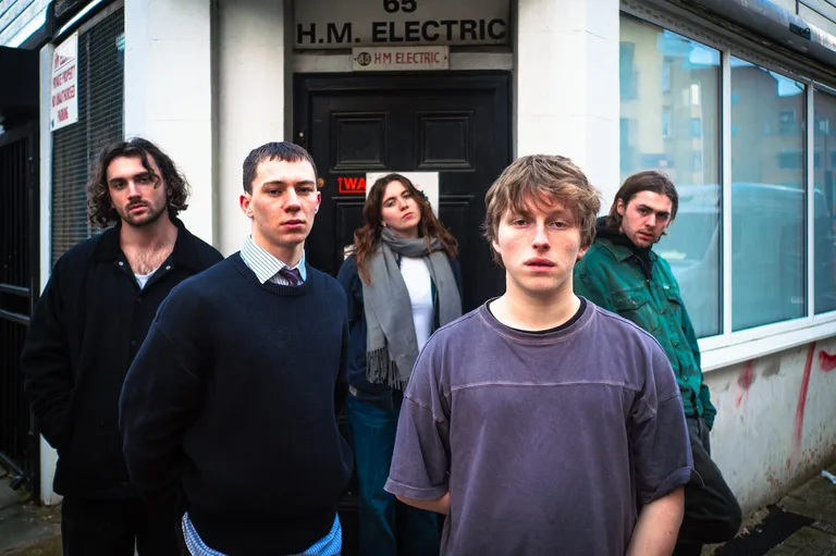 The five former university mates - drummer Nate Wicks, guitarist Verity Hughes, vocalist George Tucker, guitarist Jude Scholefield, and bassist Theodore Pasmore - that make up Lip Filler been buzzing with activity since their adrenaline-laced self-titled debut EP hit in 2023. But as Nate divulges from his current lair ("Currently got a bit of the old Nala Sinephro on. On my laptop. Happy as Larry"), their year has been a hustle worthy of a victory lap: "We've been lucky enough to have some really amazing moments already this year. Supporting O. at OMEARA was super fun; it was great talking to Joe about all his weird-ass pedals. And going up to Leeds to play with Master Peace was amazing as well."
