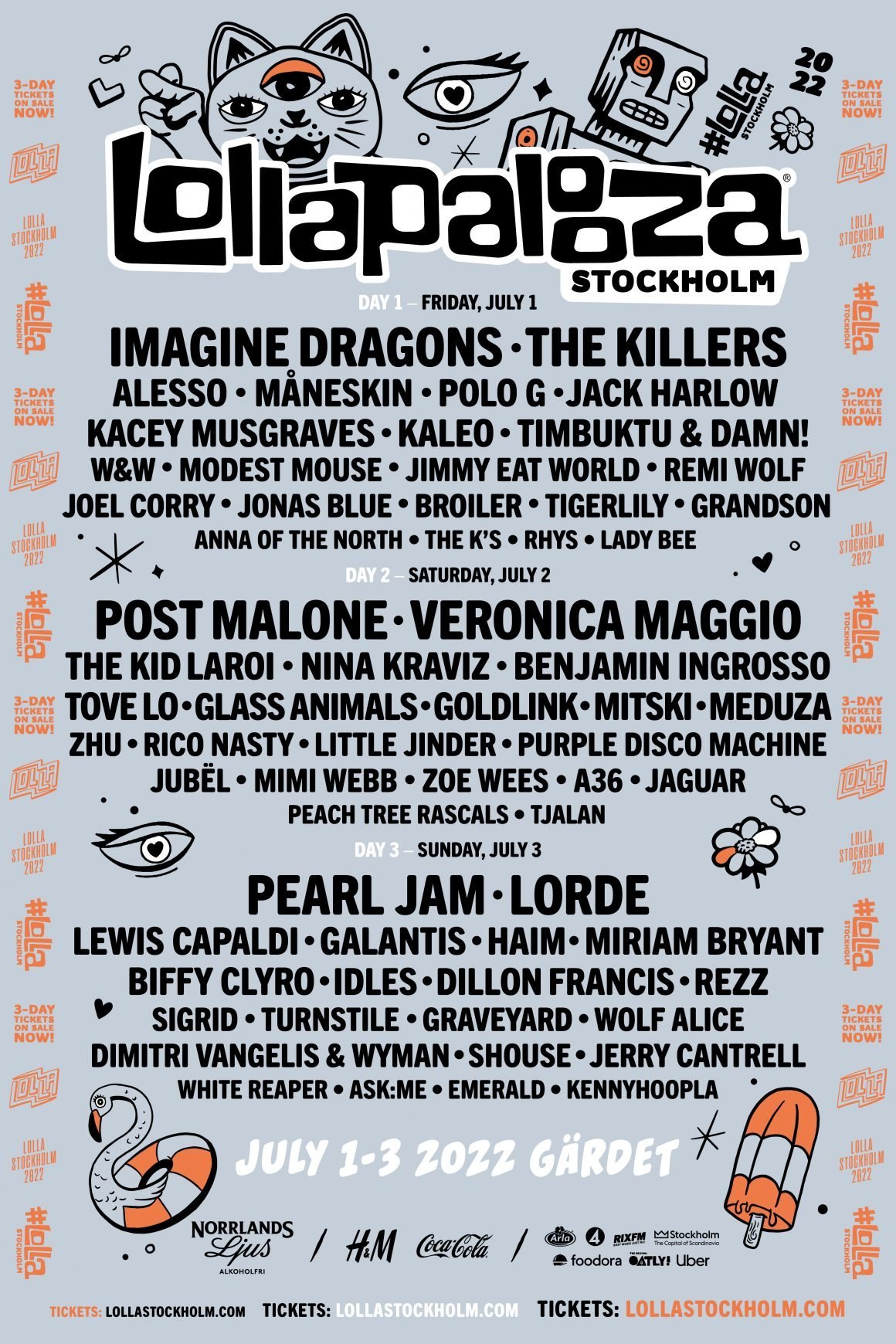 Lollapalooza Stockholm takes place between 1st and 3rd July 2022. You can check out the full line-up in the poster below. Tickets are on sale now.