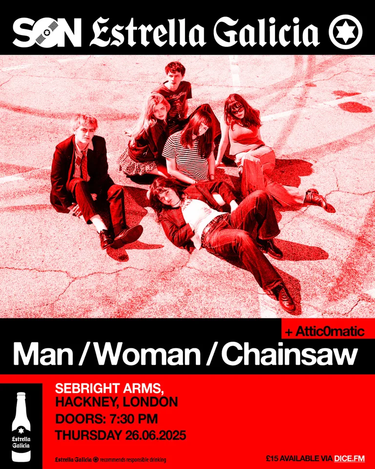 SON Estrella Galicia have announced their first event at East London's Sebright Arms, set to take place on 26th June with Man/Woman/Chainsaw headlining and support from AtticOmatic.